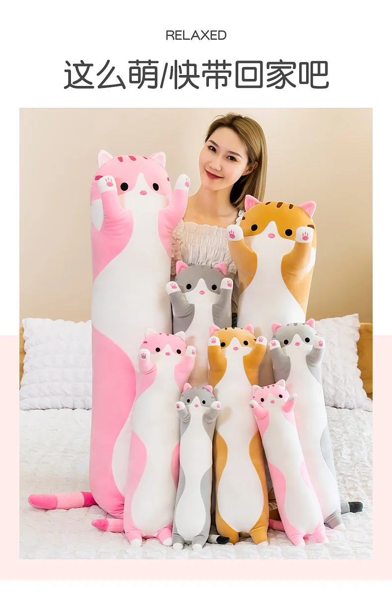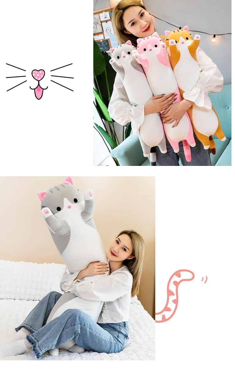 Zqswkl 110130 см аниме кавайная плюшевая длинная подушка в виде кошки, обнимающие Большие Животные, мягкие игрушки для девочек, подарок на день рождения, милая мягкая игрушка для сна