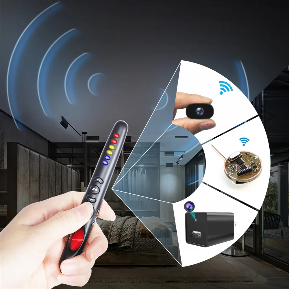 Радиочастотный детектор и персональная сигнализация G718 отлично подходят для вас, устройство имеет 3 функции:1. Обнаружение радиочастотных сигналов, Скрытая мини-камера WiFi, ошибки сигнала мобильного телефона и беспроводное устройство прослушивания2. Сканирование объектива камеры Pinhole, поиск проводных камер pinhole (которые не выводят беспроводные сигналы) в отеле, дома, офисе3. Дверная сигнализация и багажное оповещение, устройство встроено в вибродатчик для сигнализации сразу же, когда датчик срабатывает