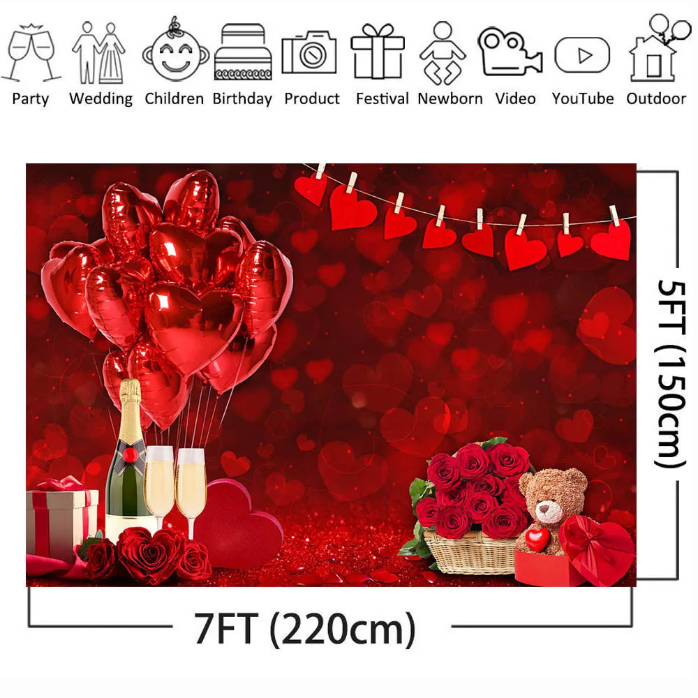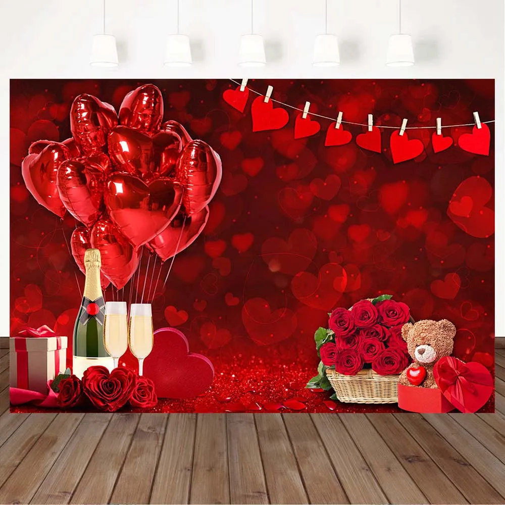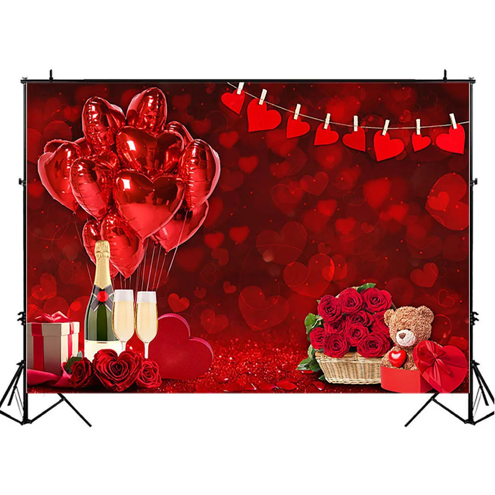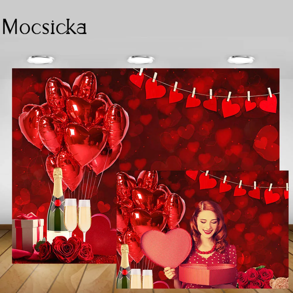 Mocsicka красный любовь сердце день Святого Валентина фон воздушный шар розовый медведь женщина День рождения Свадьба Фотография фон для фотостудии