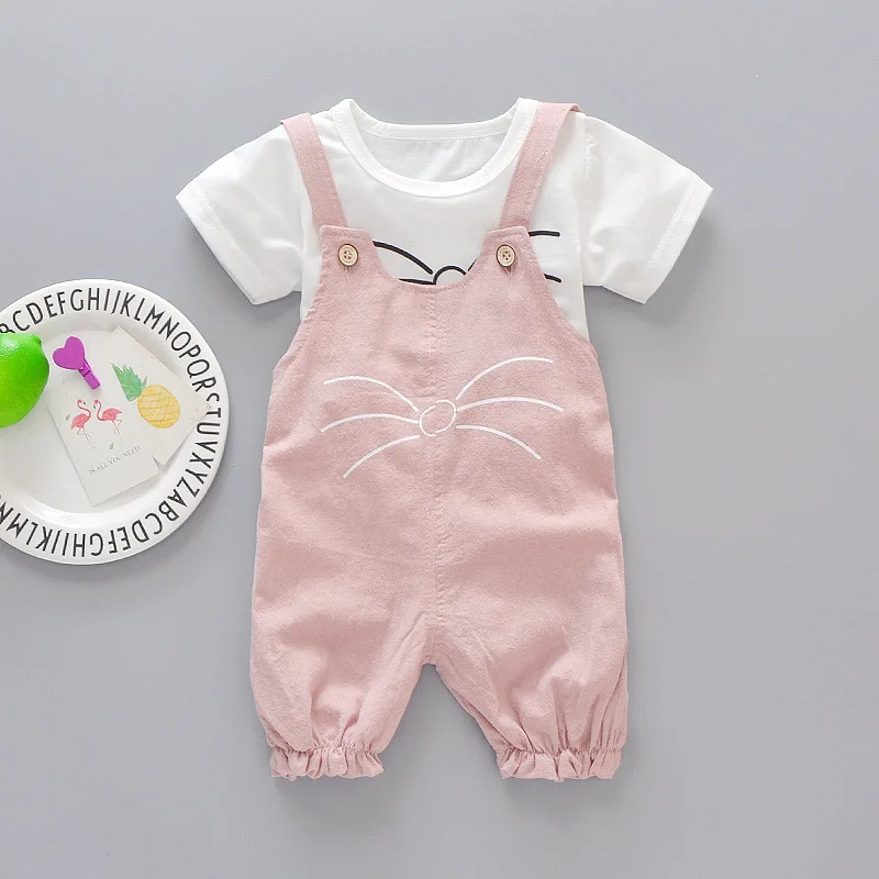 LZH 2022 летняя одежда для маленьких девочек, футболка + комбинезоны, комплект из 2 предметов, наряд, Детский Повседневный Спортивный костюм, детская одежда