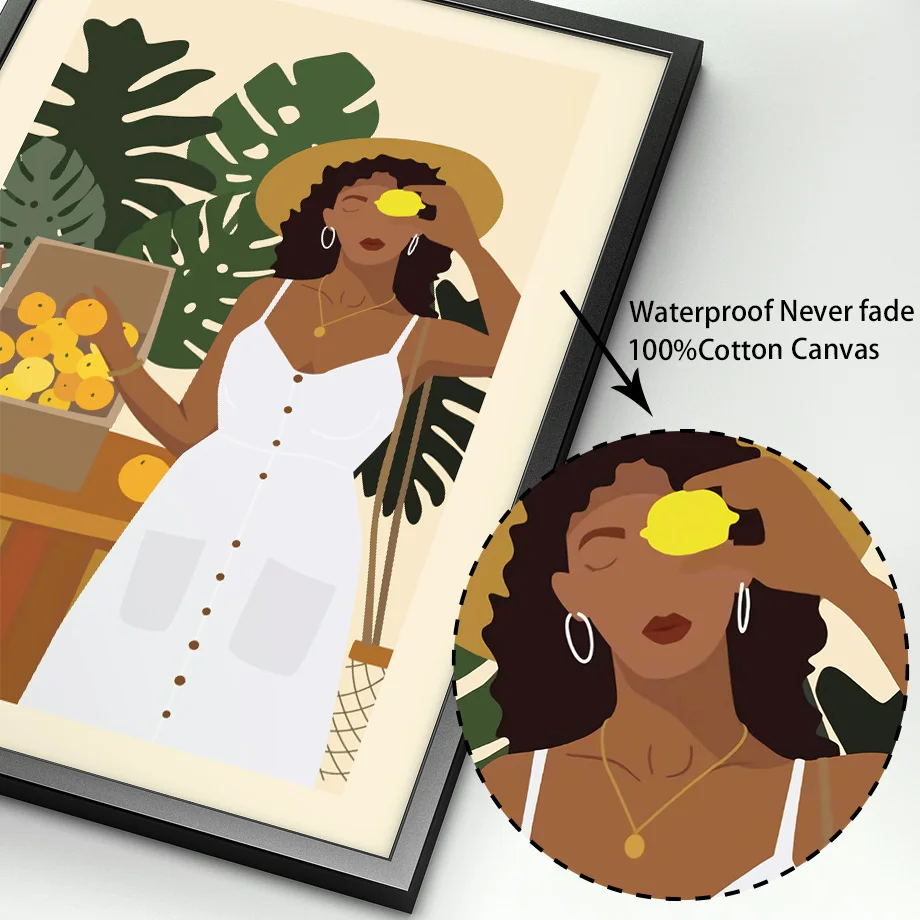 Черная Девушка Африканская женщина пальмовый лист цветок настенная ...