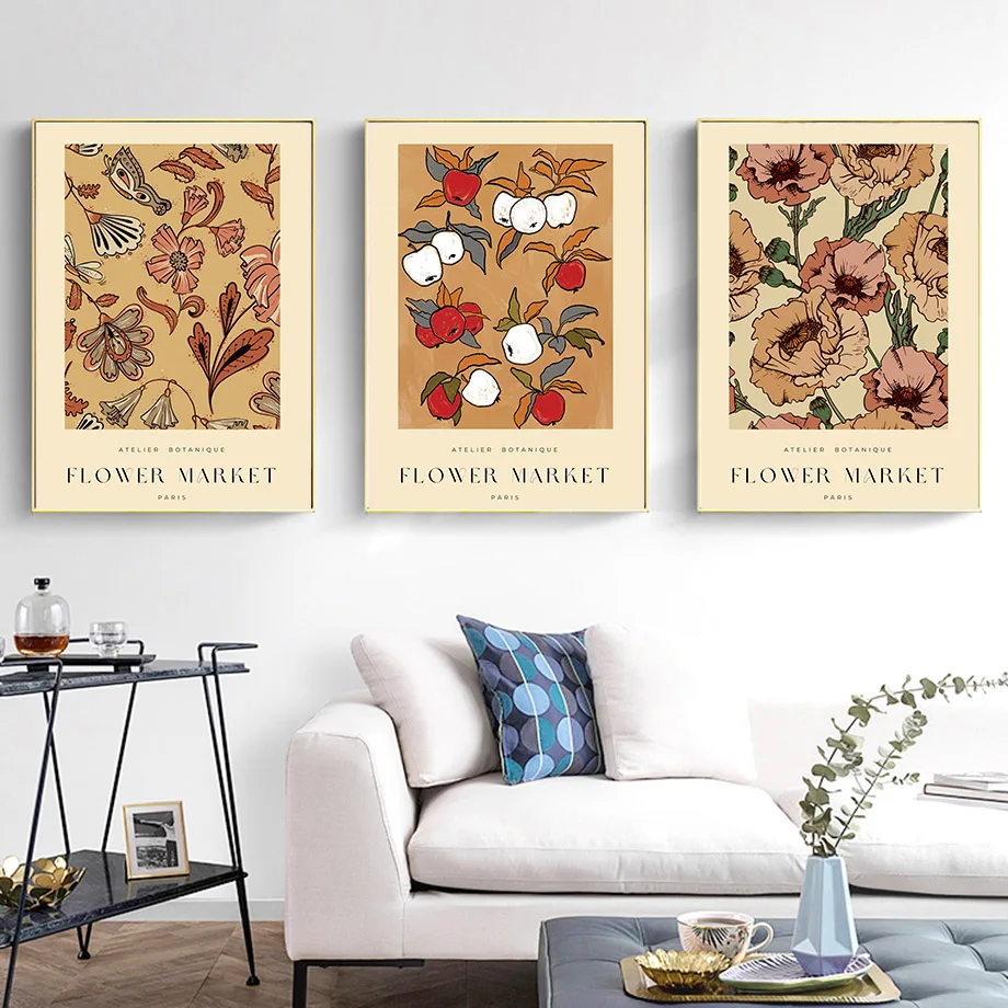 Винтажный минималистичный цветочный рынок абстрактная настенная жив...