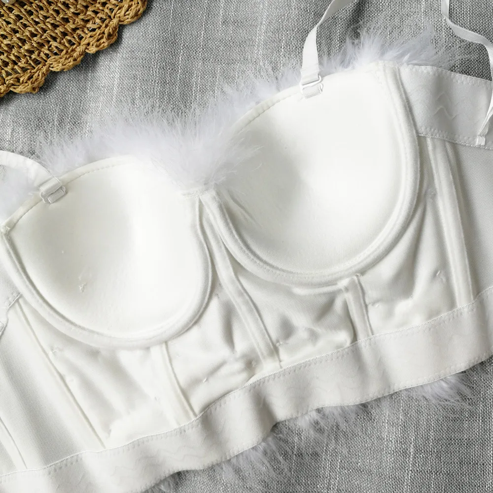 Женский сексуальный дизайнерский корсет для ночного клуба, топы с длинными перьями, женские модные топы, укороченные топы, лето 2022