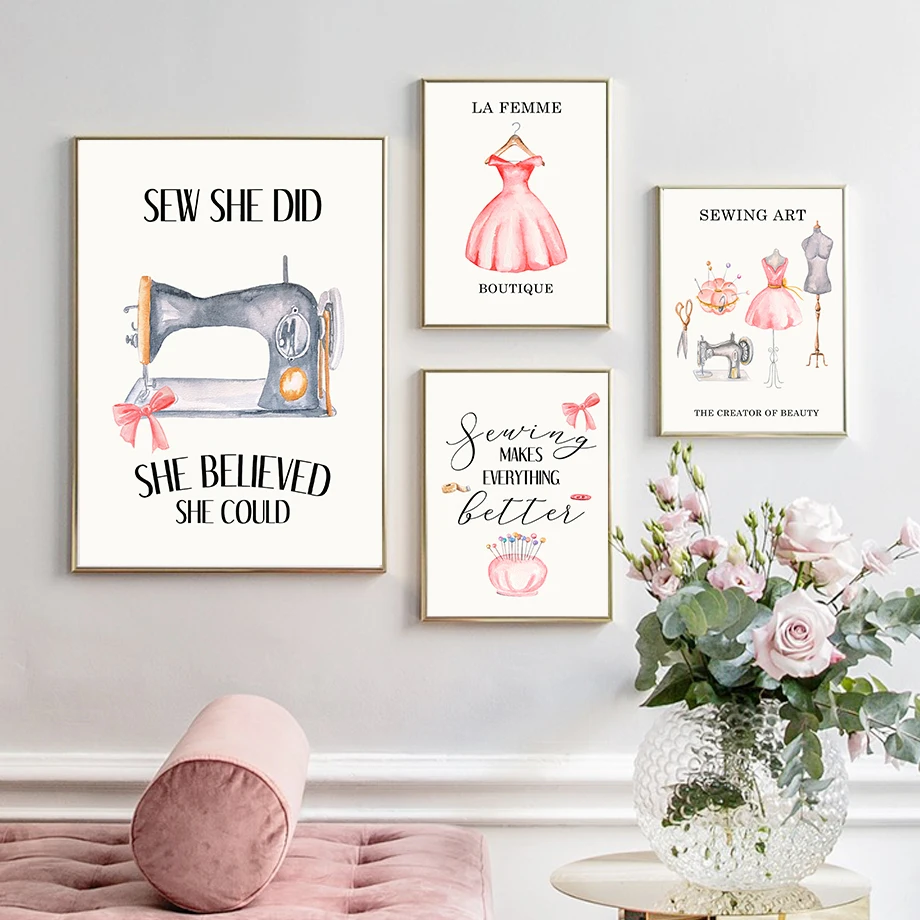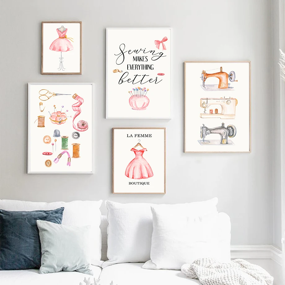 Модная Акварельная швейная машина, плакаты и принты в скандинавском стиле, настенная живопись на холсте, настенные картины для декора гостиной