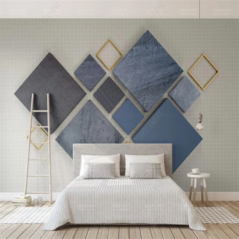 Настенная 3D Бумага для спальни, с геометрическим рисунком