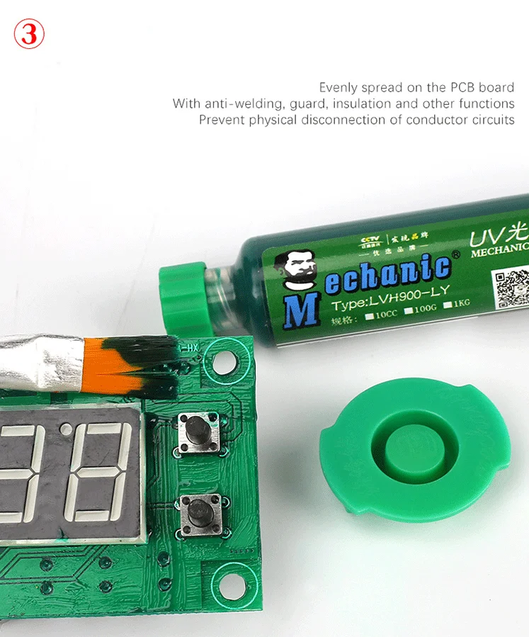 Бренд: Maintenance GuyПункт №: отверждающая паяльная маскаМодель: UVВязкость: 99Зернистость: 0,01Состав сплава: нетАктивность: гибкийТип: отверждение пастыУгол очистки: без очисткиТемпература плавления: нормальная температураТип: флюс паста припойРабочая температура: 80Область применения: краска для защиты печатной платыНазвание продукта: Уход Guy UV зеленое масло/красное/желтое/синее/черное сушенное на воздухе зеленое масло печатная плата защитная краска изоляционный защитный агентКатегория продукта: Инструменты для ремонта чипа, инструменты для ремонта материнской платы, антистатические очистительные инструменты/сварочные аппаратыЕмкость: 5 млФункция: после сварки определенной части компонента, он выступает в качестве защиты изоляции.Жидкий припой для фотографий (широко известный как зеленое масло)-это защитный слой, который покрыт печатными платами, которые не нужно паять на цепи и подложке. Цель заключается в том, чтобы долгое время защищать сформированную схему цепи, и ее выдающиеся функции заключаются в следующем:(1) Предотвращает физическое отключение контуров проводника;(2) в процессе сварки предотвращает короткое замыкание, вызванное переходом;(3) только припой частей, которые необходимо припаять, чтобы избежать отходов припоя;(4) уменьшает загрязнение меди паечным желобом;(5) предотвращает износ изоляции и коррозию, вызванную внешними экологическими факторами, такими как пыль и влажность;(6) с высокой изоляцией, возможно увеличение плотности цепи.