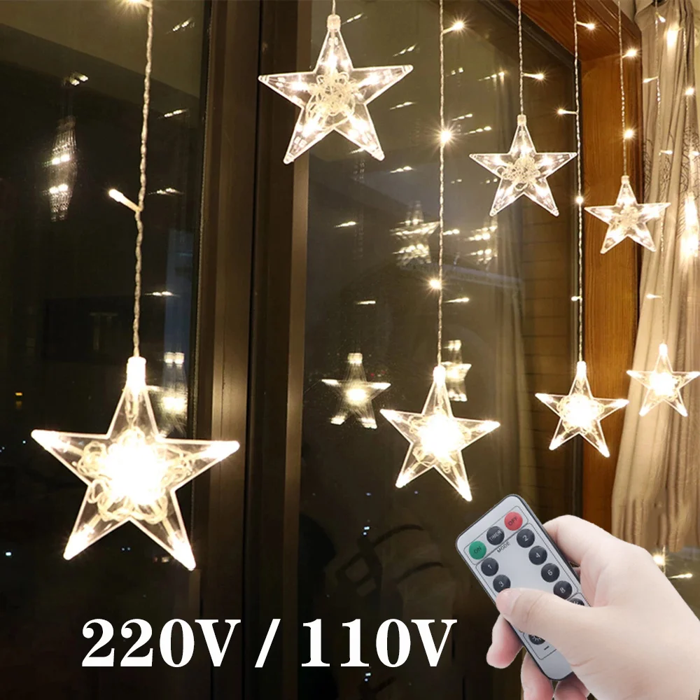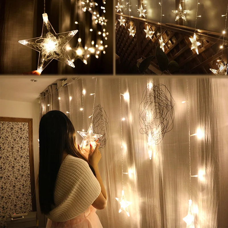 Рождественская светодиодная гирлянда-занавеска со звездами, 2,5 м