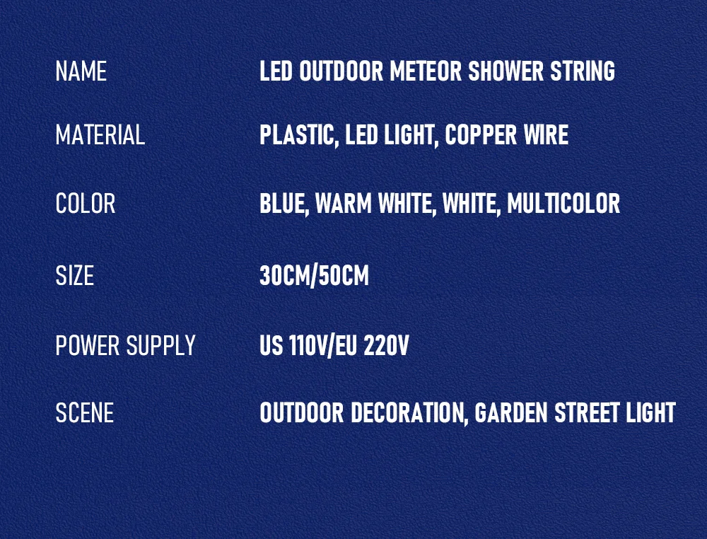 IP65 $12305 тест D'WaterНаружные метеоритные душевые огни, построенные по погодным технологиям, которые могут выдерживать экстремальные температуры, дождь, ветер и влажный климат, идеально подходят для украшения на открытом воздухе.