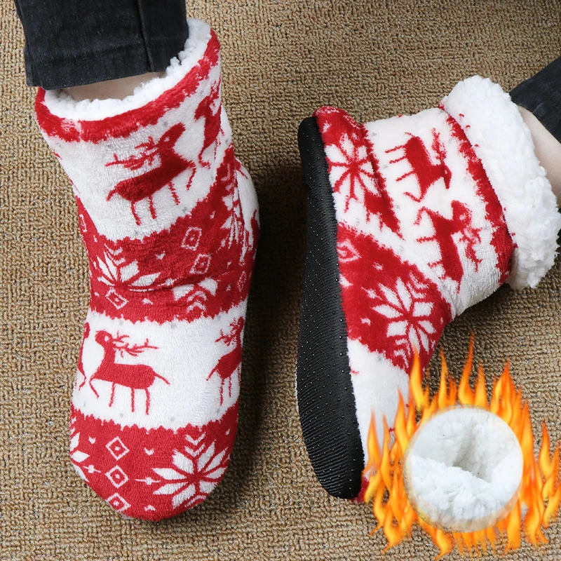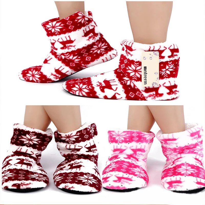 Зимние носки, обувь, теплые тапочки, плюшевые стельки, Нескользящие стельки, женские домашние тапочки, Рождественская домашняя обувь с оленем