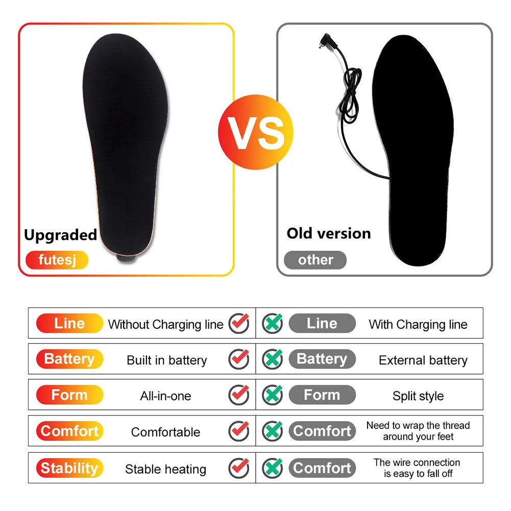 Стельки с подогревом USB 2300 мАч, перезаряжаемая подошва горячего ...