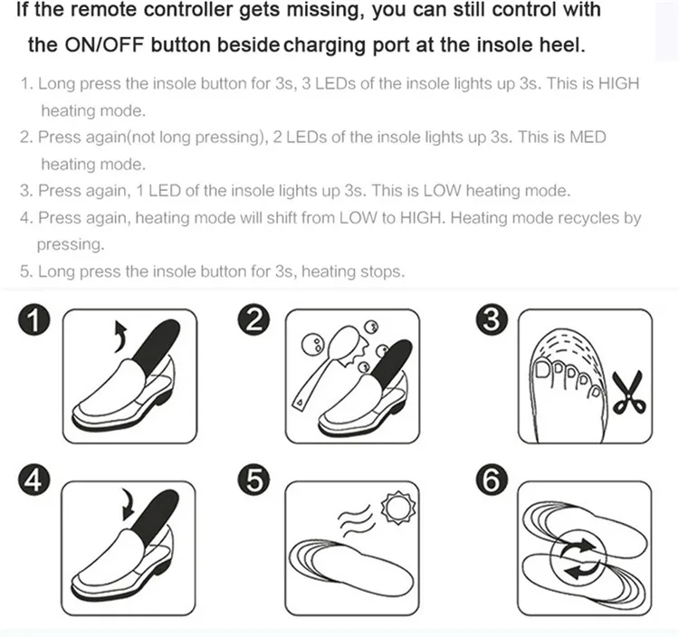 Стельки с подогревом для обуви с дистанционным управлением, 2000 мАч
