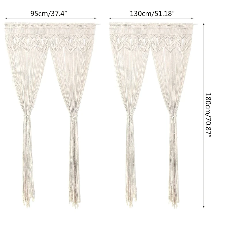 Макраме хлопок тканый гобелен ручной работы богемный разделитель для комнаты оконные двери шторы свадебный фон домашний декор100% новый и высокое качествоОсобенности:Изготовлен из ручного тканого хлопкового материала, имеет уникальный дизайн и использует натуральные материалы, которые являются минималистичными. Шикарный Настенный декор макраме сделан из хлопковых веревок, которые не имеют запаха, долговечны и экологически безопасны.Идеально подходит для свадебных фонов макраме и декораций детской/гостиной, где бы вы ни хотели, чтобы принести некоторую текстуру и интерес к вашим стенам.Уникальный богемный макраме дизайн, чистый ручной работы двери шторы, нежный, но простой. Есть модные элементы в винтажном стиле.Используйте только фен, чтобы регулярно сдувать пыль вместо мытья водой, в соответствии с обычным обслуживанием. Если вам нужно постирать изделие, обратите внимание, что это должно быть сделано вручную, а не в стиральной машине. Аккуратно надавите на изделие руками и аккуратно протрите его.Подходит для свадебных подарков, свадебных канцелярских принадлежностей, бохо украшения для тематических вечеринок, подарков на день рождения и т. д.Характеристики:Материал: хлопок01 размер: approx.95x180cm/37.40x70.87in02 Размер: approx.130x180cm/51.18x70.87inЦвет: как показано на фотографииКоличество: 1 шт.Примечание:Нет розничной упаковки.Возможны отклонения в 0-1 см вследствие измерений вручную. Пожалуйста, убедитесь, что вы не возражаете, прежде чем сделать ставку.Из-за разницы между различными мониторами изображение может не отражать фактический цвет изделия. Спасибо!Посылка:1 х Тканый гобелен ручной работы (другие демонстрационные аксессуары на картинке не включены.)