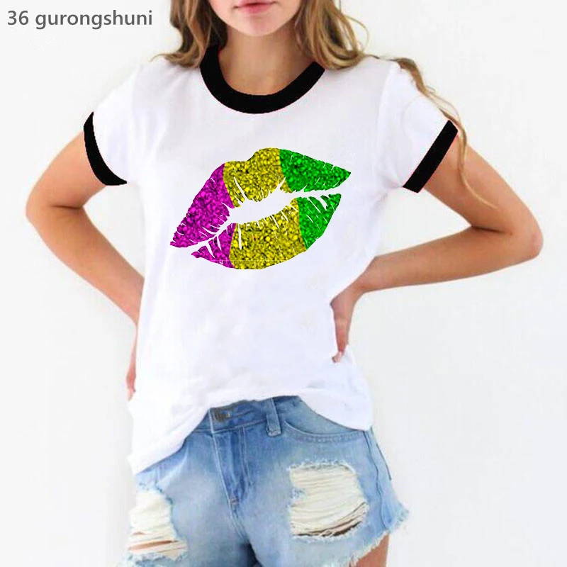 Женская футболка с принтом в виде красных губ и коротким рукавом