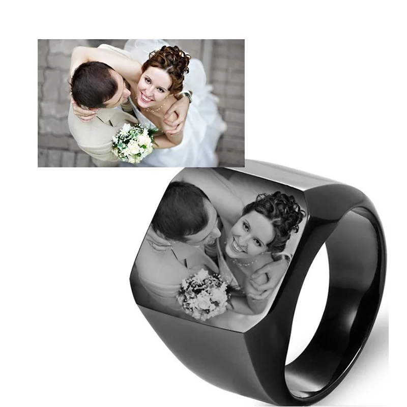Пользовательские фото кольца для мужчин персонализированные изображения имя кольца из нержавеющей стали индивидуальная гравировка имя кольцо пара