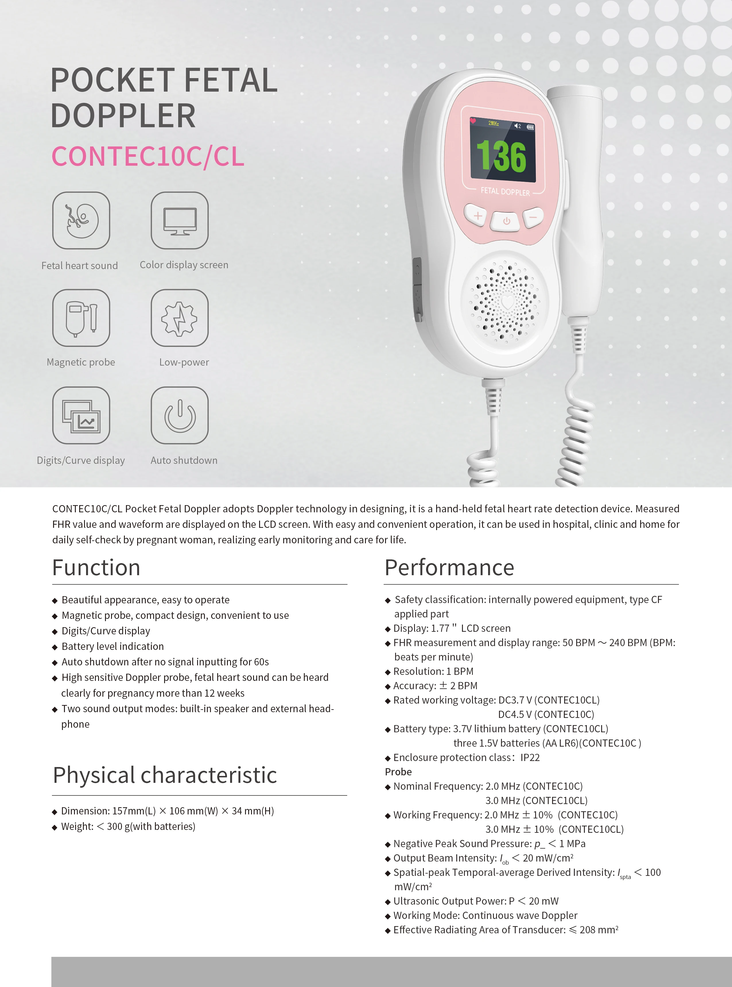 Карманный фетальный допплер является Ручным Устройством обнаружения FHR, он прост в эксплуатации, и может быть использован в больницах, клинике и дома для ежедневной самопроверки беременной женщины.