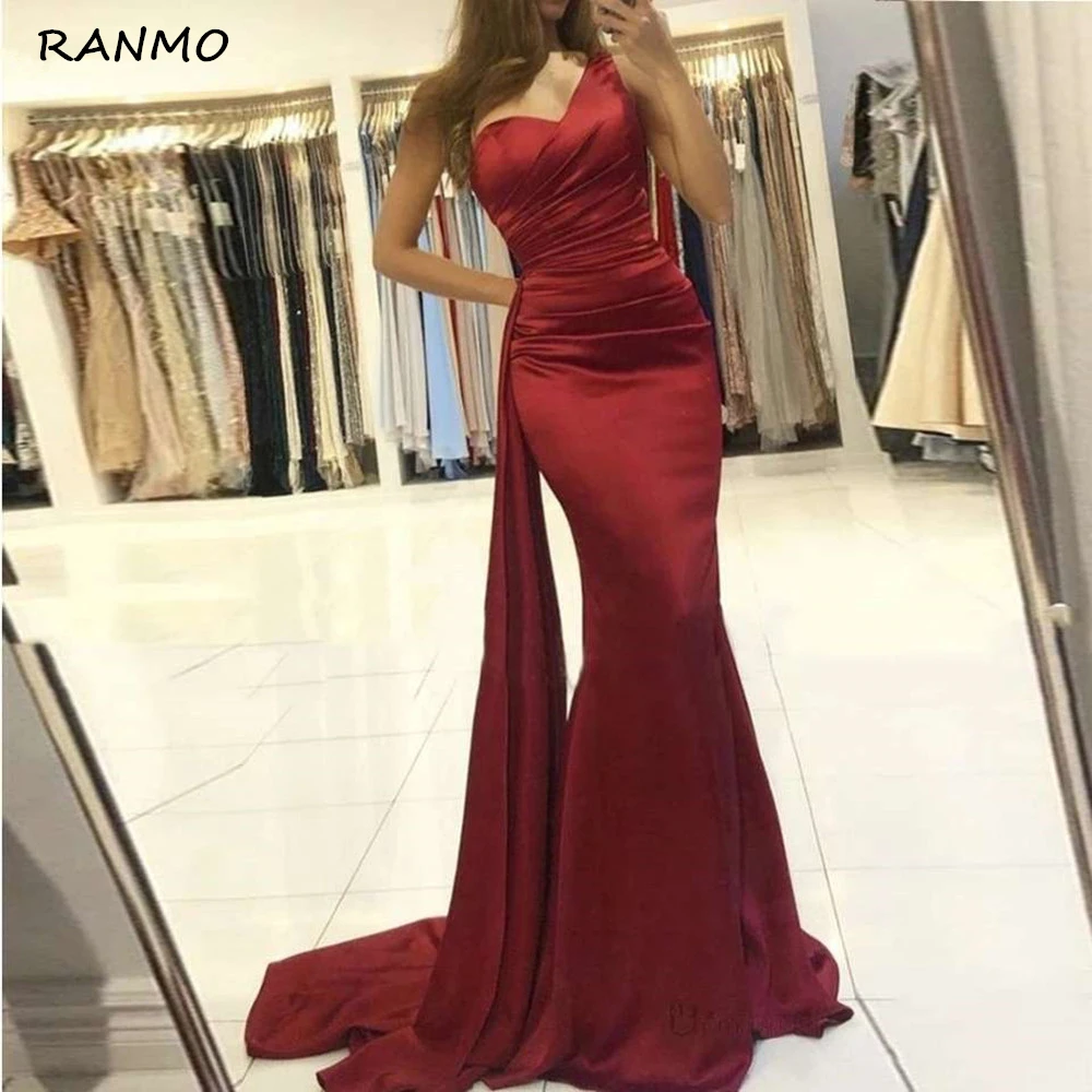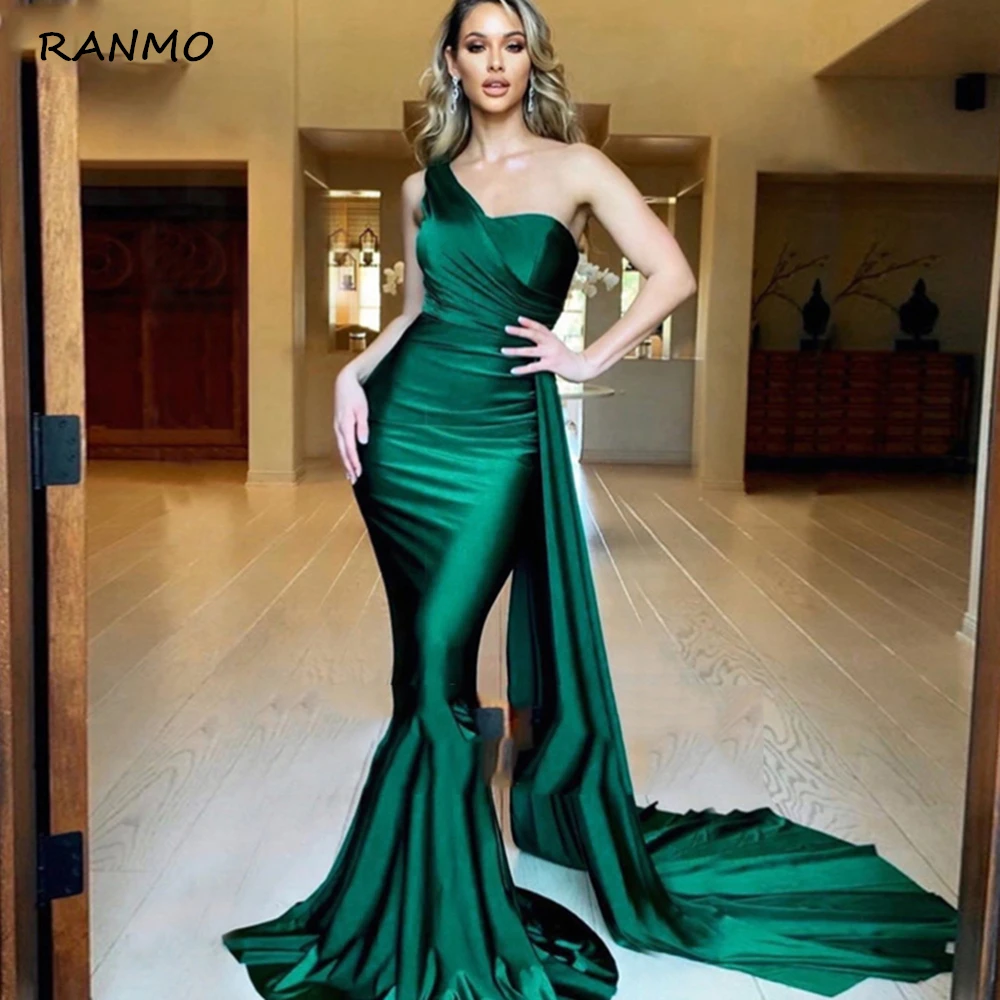 Женское атласное платье с юбкой годе, длинное облегающее платье на одно плечо, с лентами, изумрудного цвета, сексуальный наряд для свадебной вечеринки, 2021