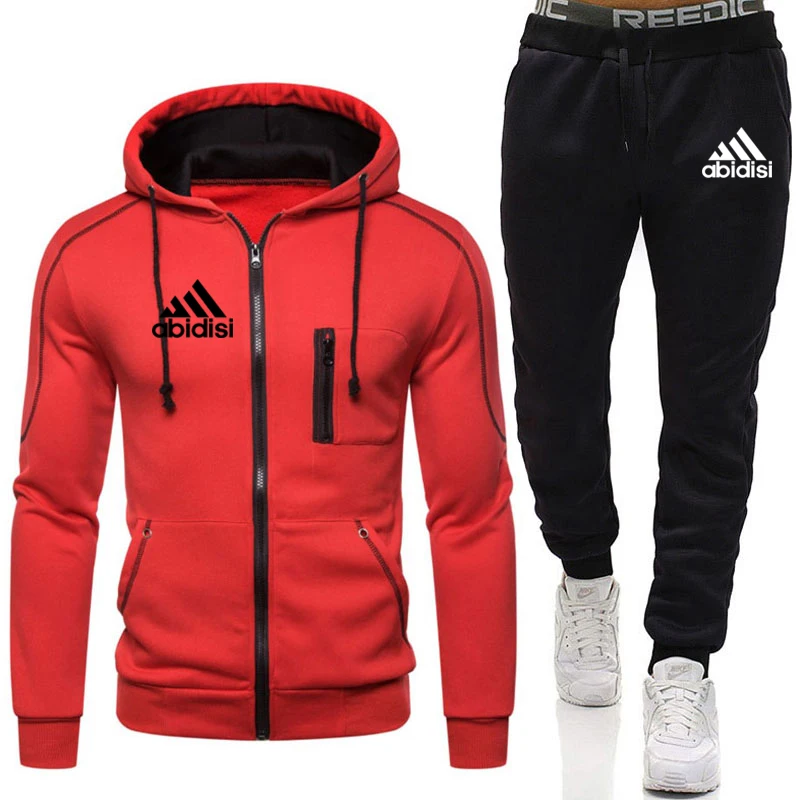Мужской спортивный костюм с надписью, черный спортивный костюм с толстовкой на молнии и штанами, Осень-зима 2021
