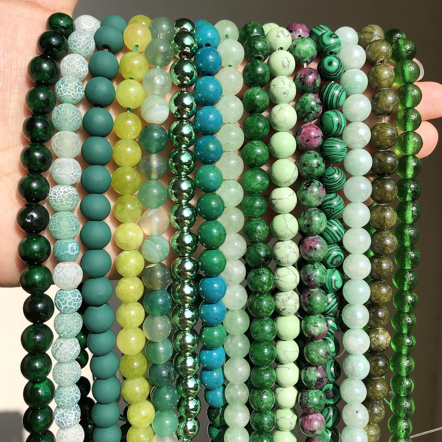 Бусины из зеленого натурального камня, перидот, халцедон, малахит, бирюзы, бусины россыпью для изготовления браслетов, ожерелий, ювелирных изделий сделай сам, 4-12 мм