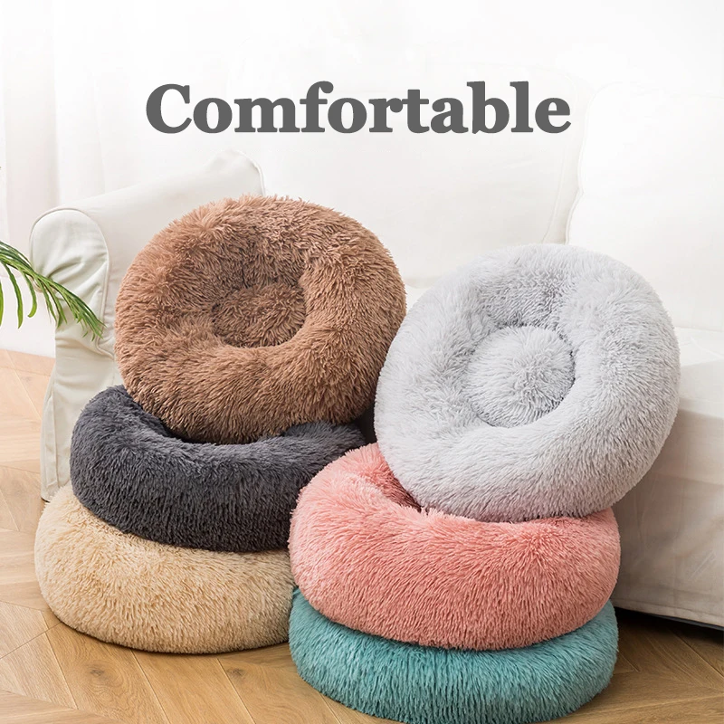 Круглая кровать для домашних животных, кошек, собак, домик для кошки, мягкий длинный плюшевый диван для сна, теплая флисовая будка, зимний удобный коврик