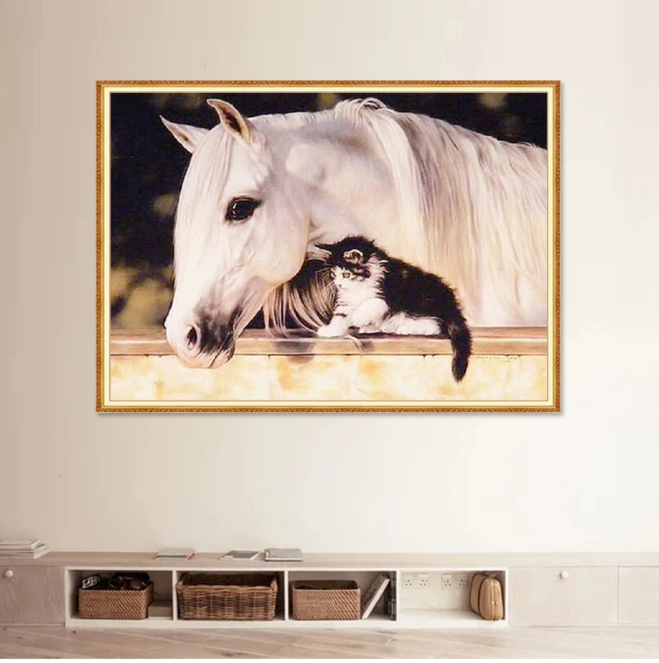 Алмазная 5D картина сделай сам, Набор для вышивки крестиком с изображением животных, полная выкладка, мозаика с рисунком лошади, стразы, Декор