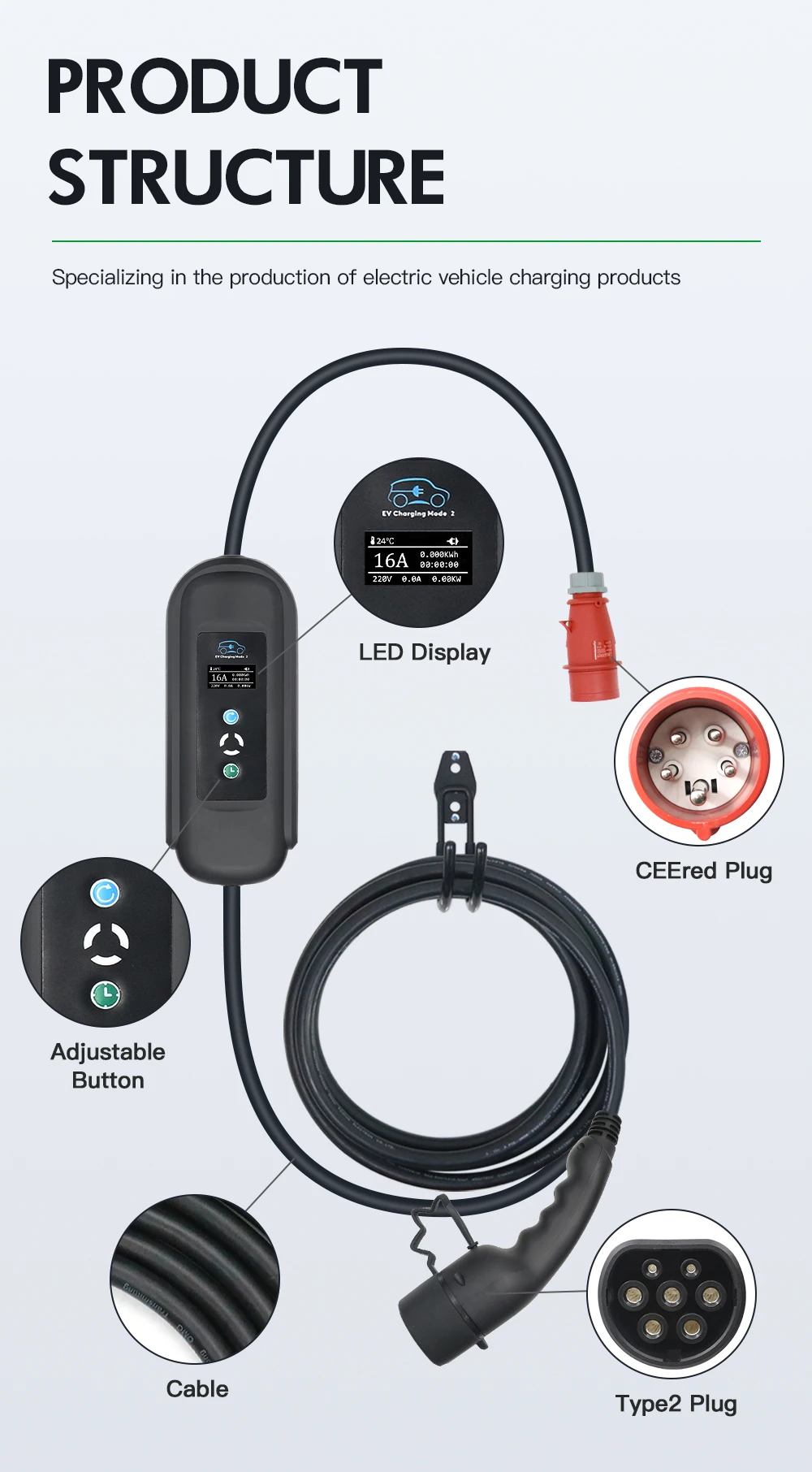 EVSE 5M IEC 62196 EV зарядное устройство тип 2 EV зарядка регулируе...
