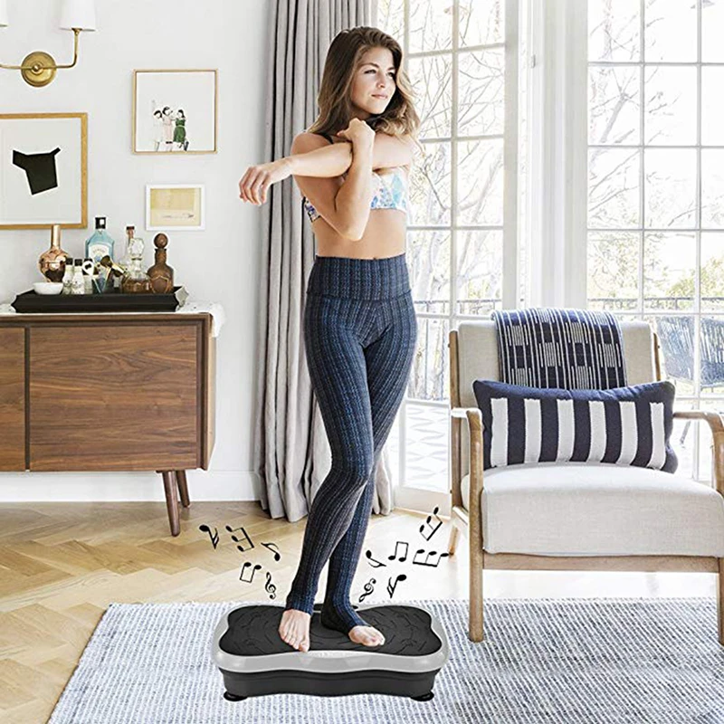 Посылка включает в себя: 1 x Соединительная фитнес-вибрационная машина 2 резинки сопротивления 1 x пульт дистанционного управления (батарейки в комплект не входят) 1 х шнур питания 1 x Руководство пользователя