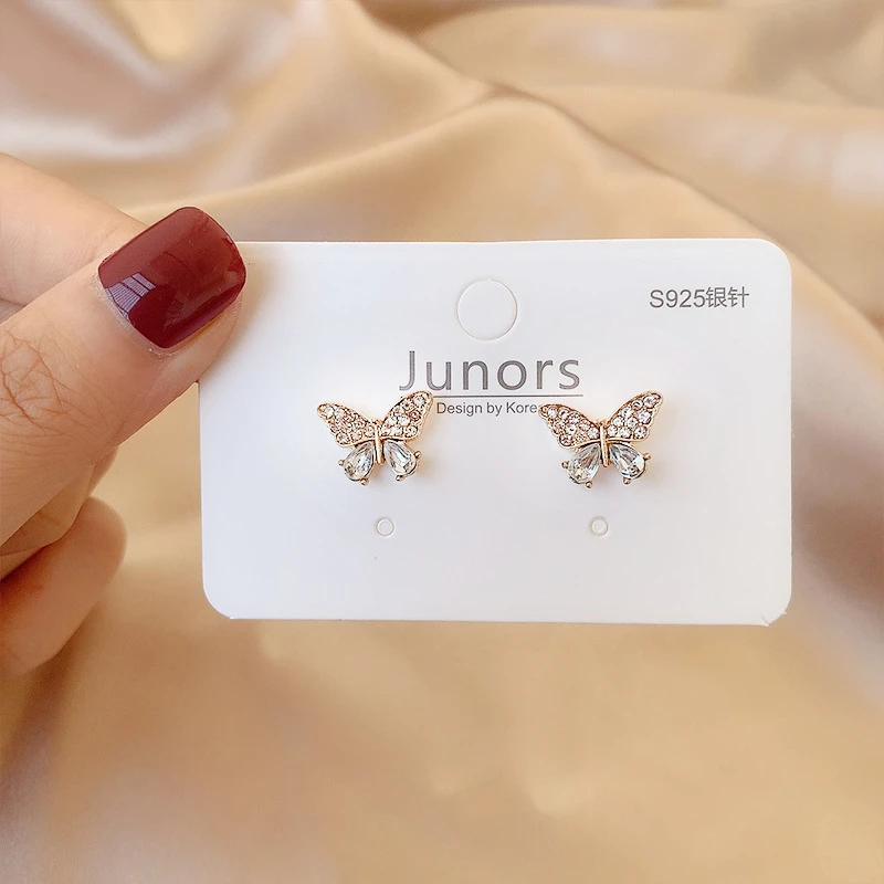 Корейские элегантные милые серьги-гвоздики Стразы с бабочкой для же...