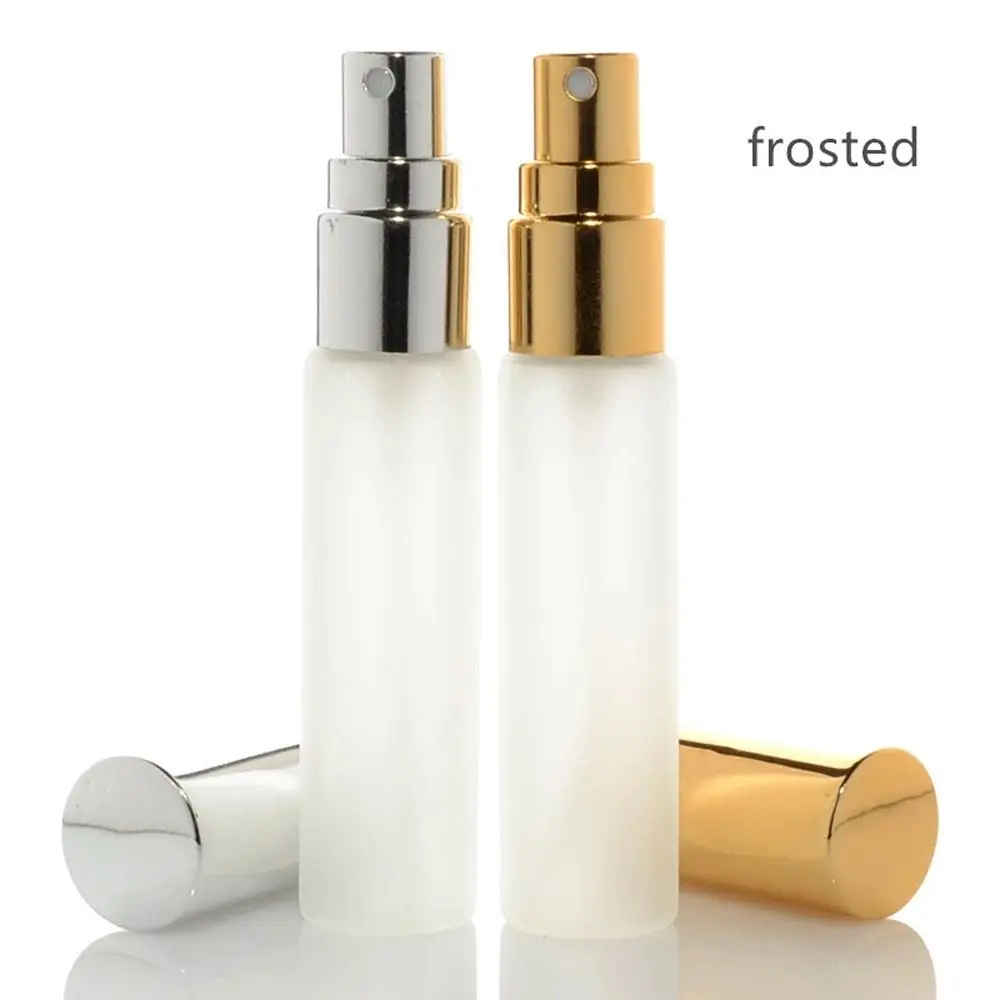 Прозрачная Тонкая Стеклянная бутылка-распылитель 10 мл, флакон для образцов, портативная фотография, золотая, серебряная крышка