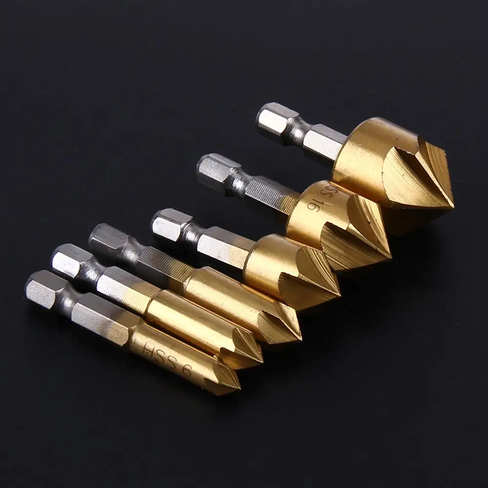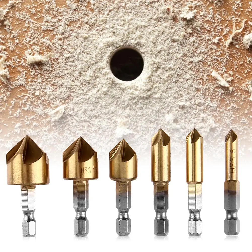 ZK30 6 шт 5 флейты Зенковка фаски сверло 14 "Шестигранным хвостовик...