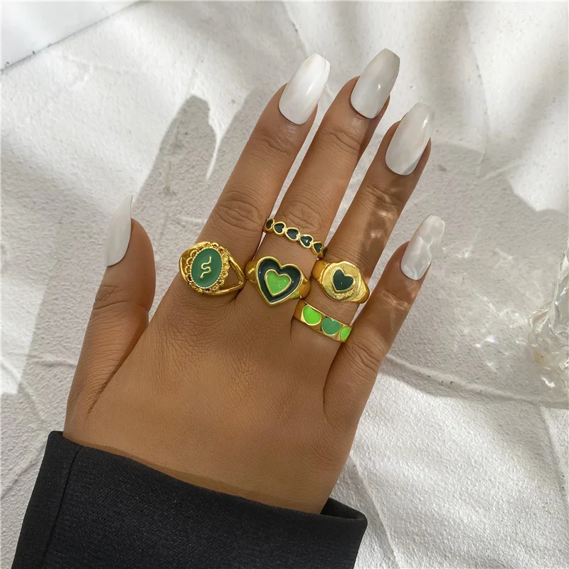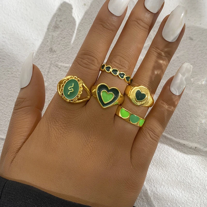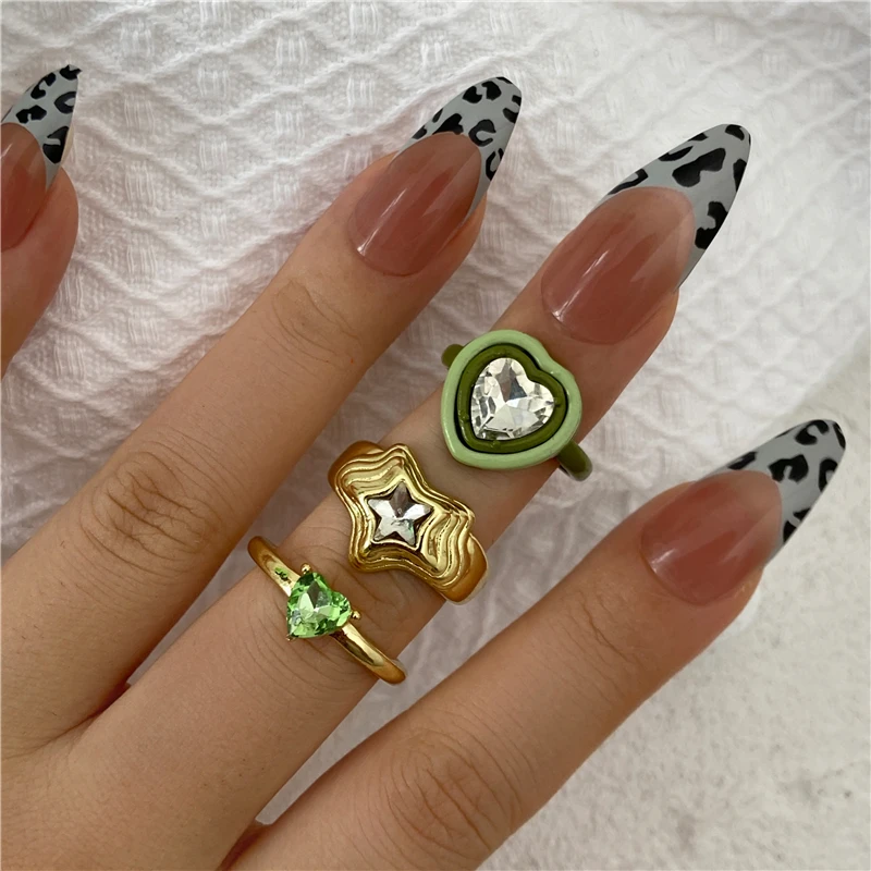Комплект женских колец в форме сердца, черного и зеленого цветов, 1...