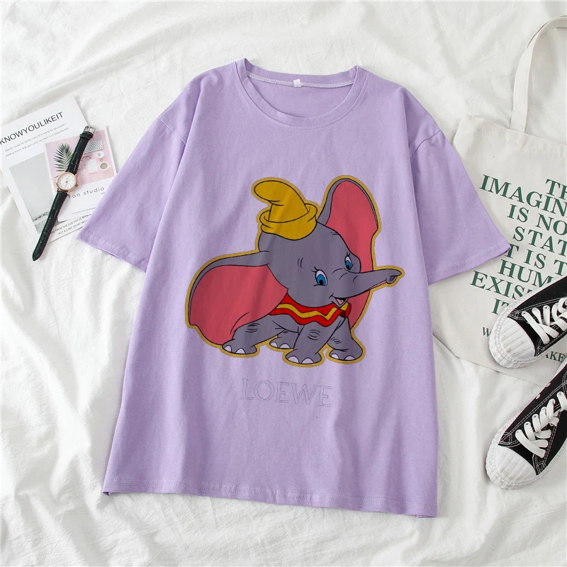 Новая мода Kawaii слон Дамбо Графические Топы Harajuku Смешные Мультфильмы Disney футболка Эстетическая летняя винтажная кроиновая уличная одежда