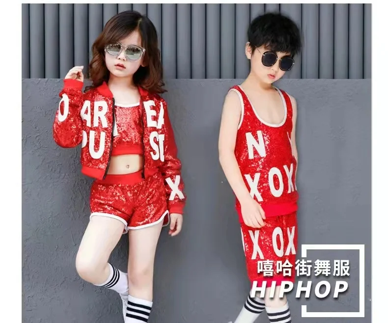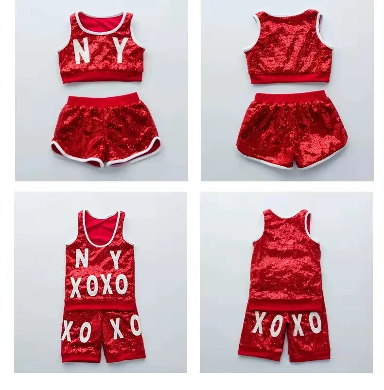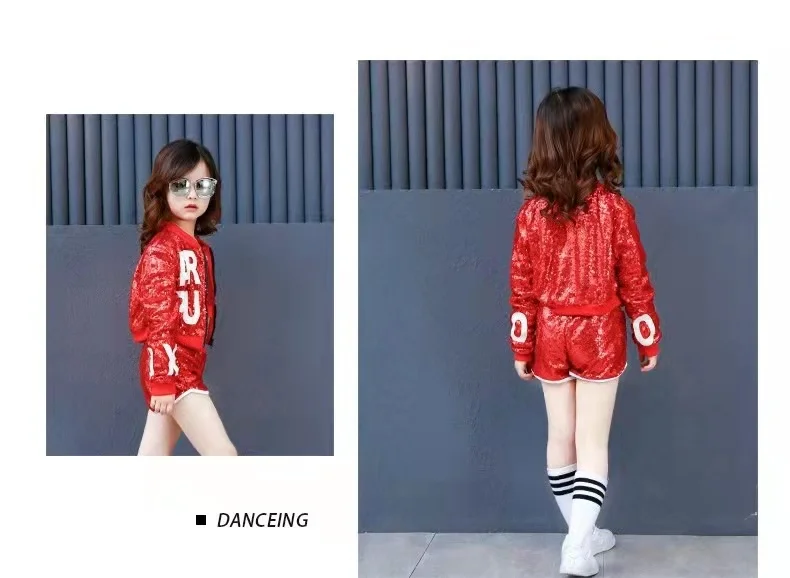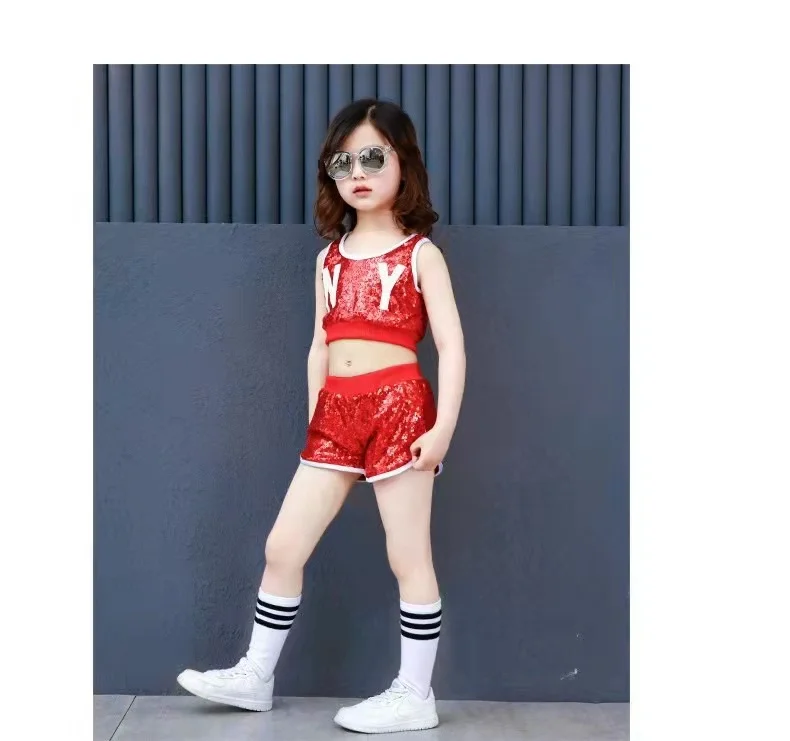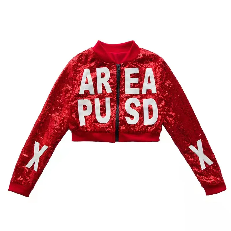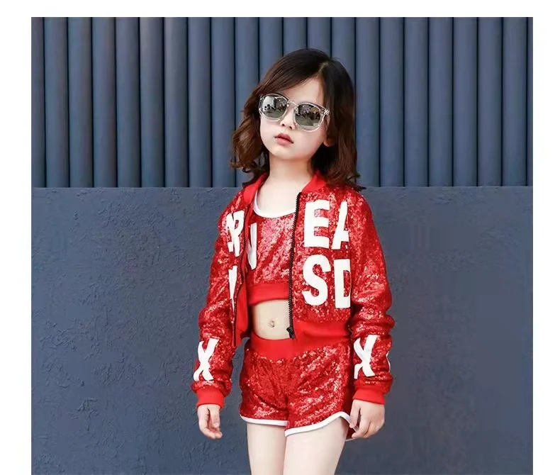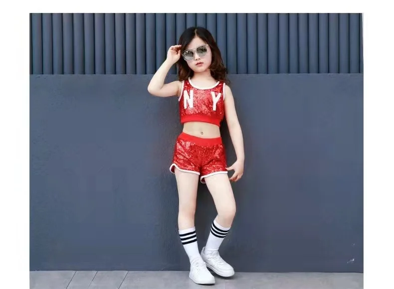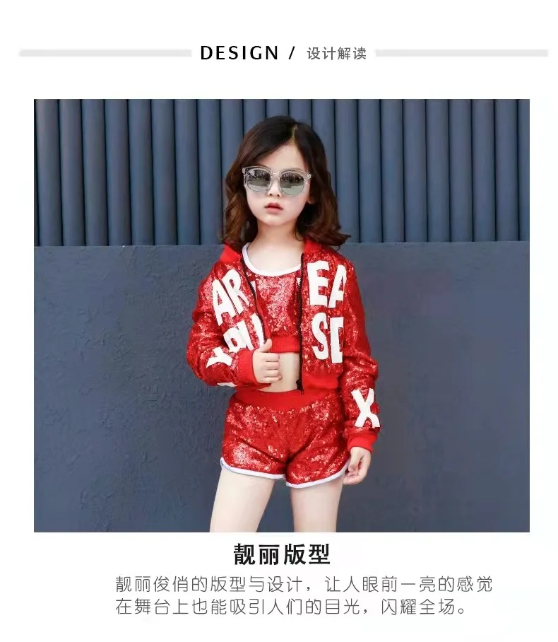 Новый детский костюм для джаза и современных танцев, детская одежда в стиле хип-хоп, уличная одежда, куртка с блестками в стиле хип-хоп, футболка, джазовые платья для девочек