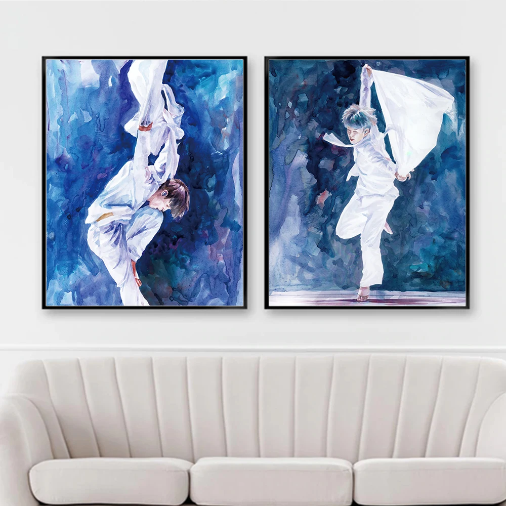 Картина на холсте южнокорейский мальчик-группа плакат Bts современный фильм звезда джимин Танцующая Акварельная Настенная картина декор для комнаты и дома