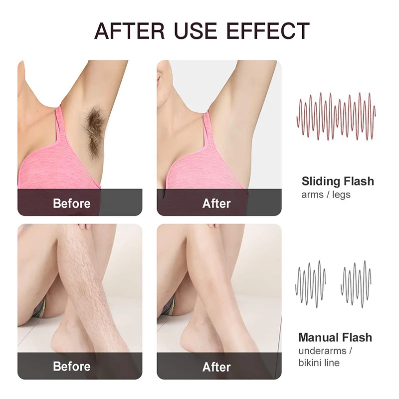 Одна вспышка: подходит для волос на губах/бикини на подмышках и других небольших участков для удаления волос
