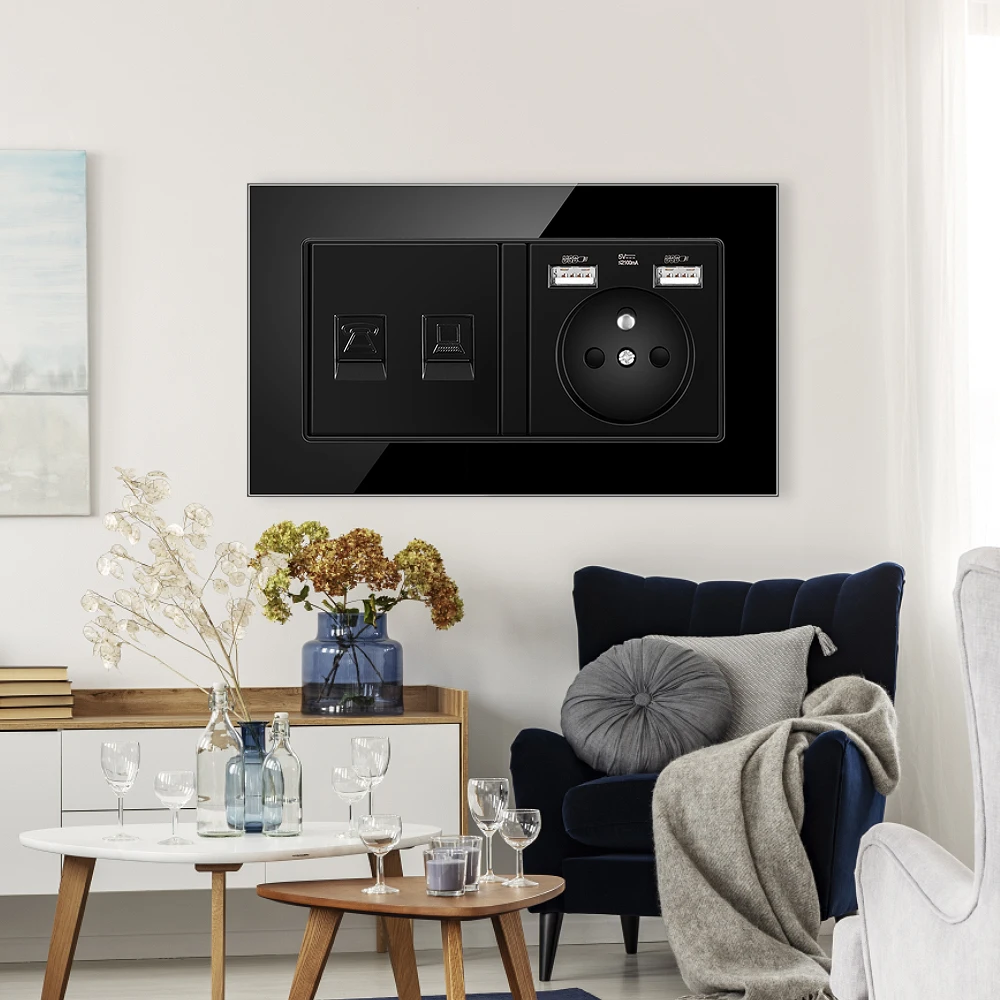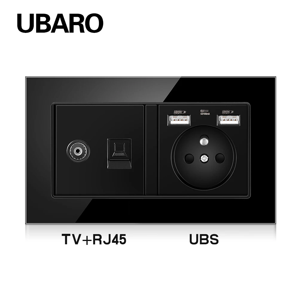 Стандартная настенная розетка UBARO из закаленного стекла с RJ45RJ11TVUsb 5 в 2 А, 16 А