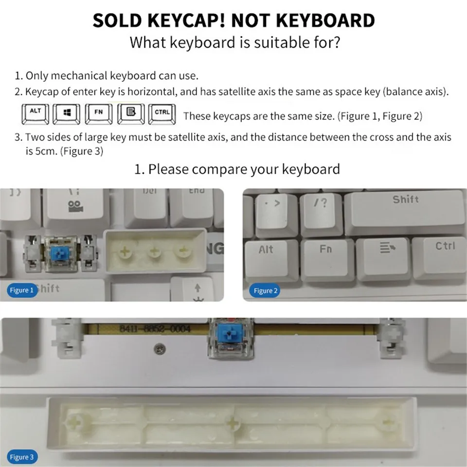 2. Клавишный колпачок-плоский. И это, и пробел являются спутниковыми валами (балансовые валы). Клавиши ALT, WIN, FN и CTRL одинакового размера.