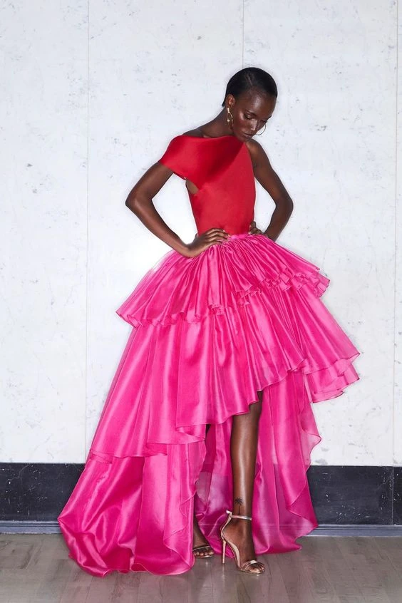 Женская плиссированная юбка из органзы, розовая юбка с высокой талией и оборками, юбка в складку, лето