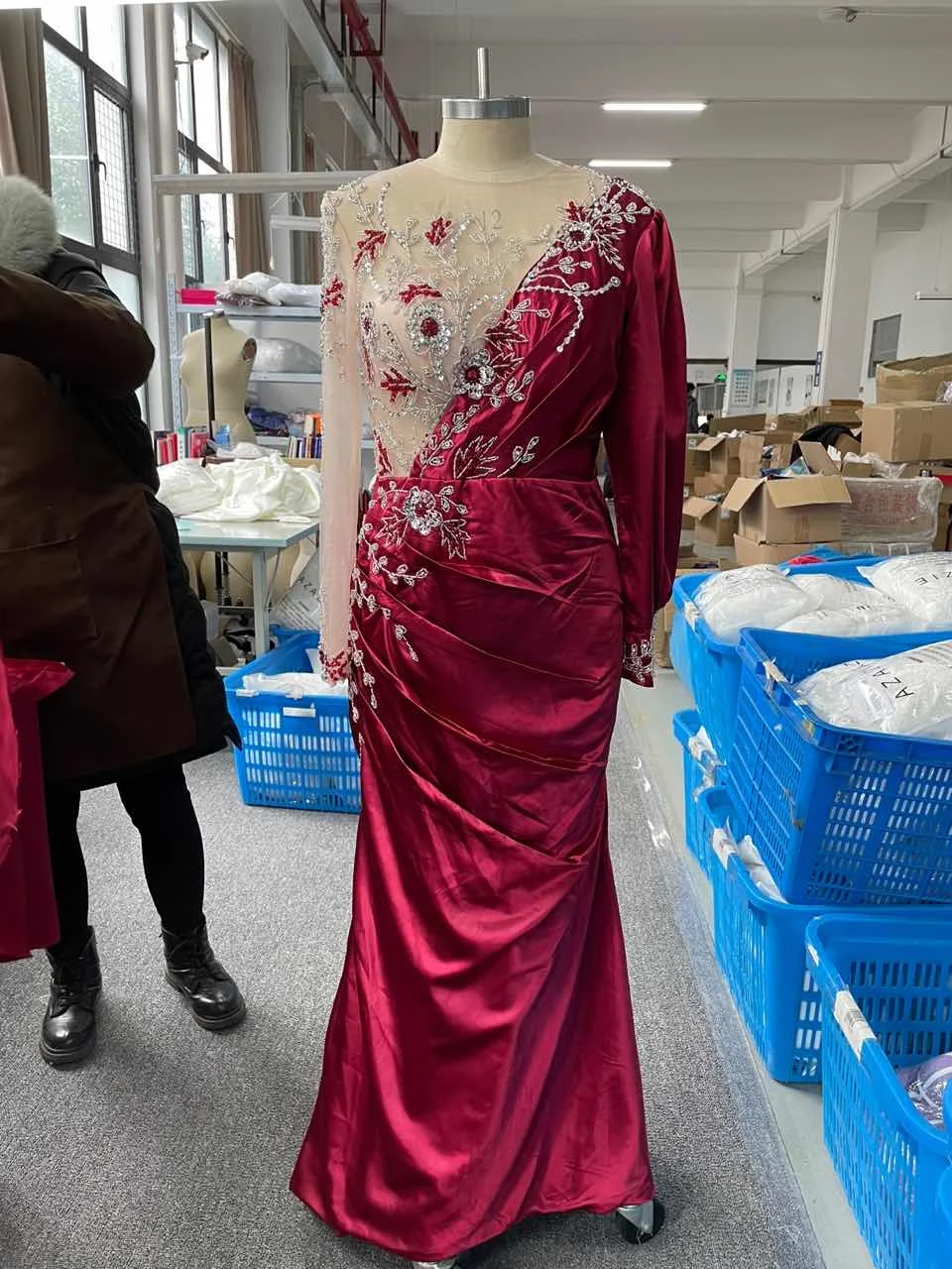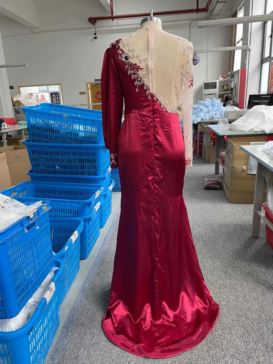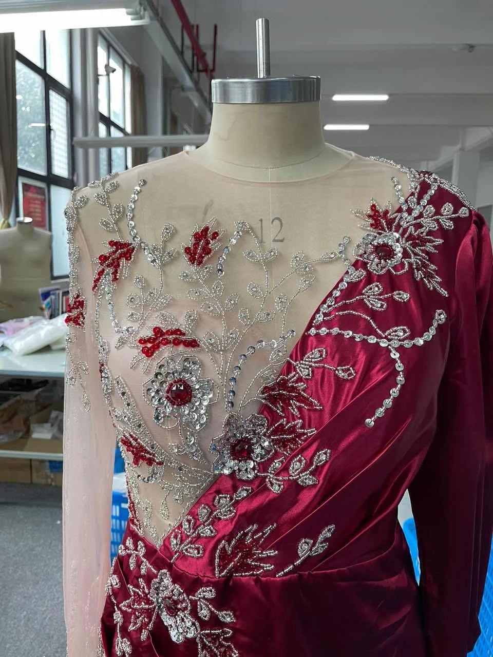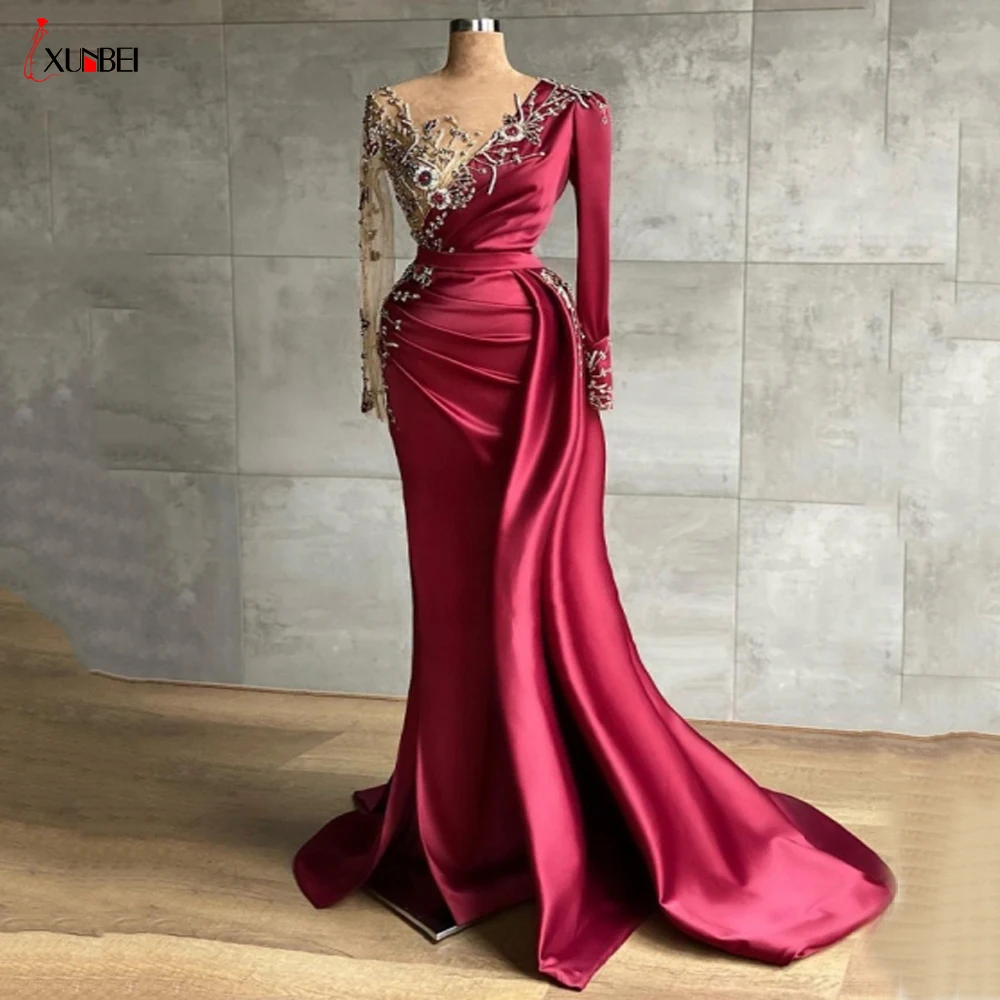 Элегантное бордовое атласное платье с кристаллами, вечернее платье ...