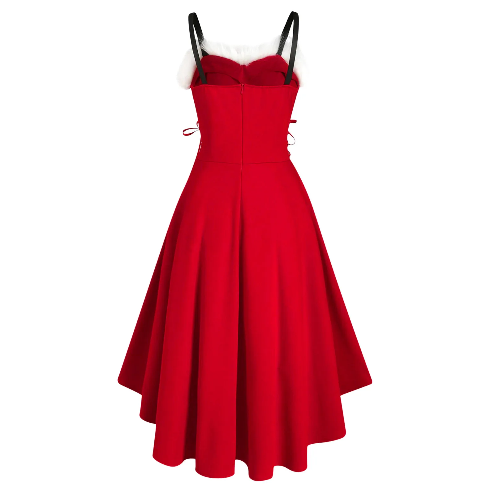 Женские рождественские платья со шнуровкой из искусственного меха, однотонное асимметричное платье средней длины с высоким и низким вырезом, модное рождественское платье с открытыми плечами # f3