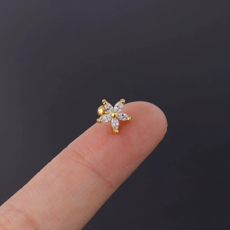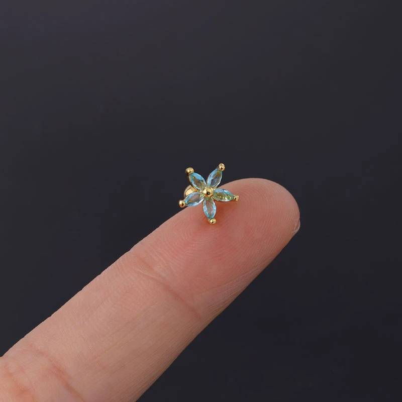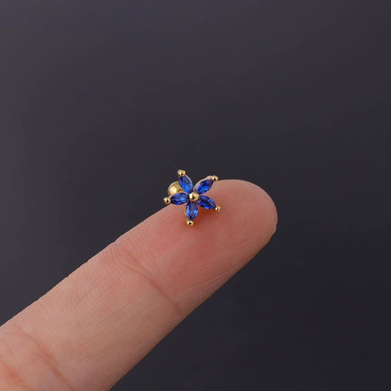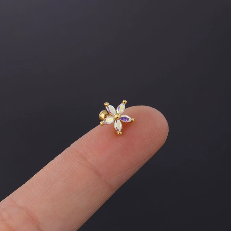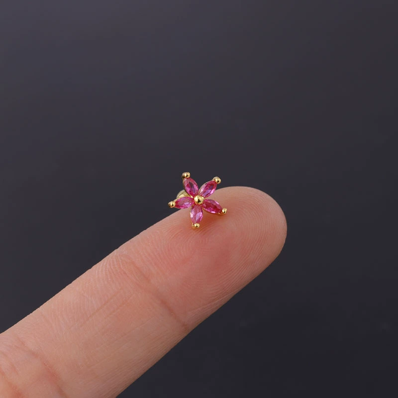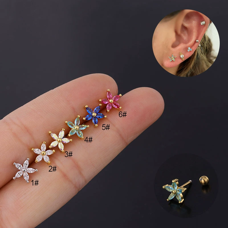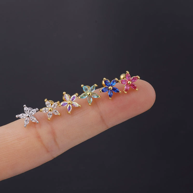 Модные новые красочные циркониевые серьги в форме маргаритки из нержавеющей стали, тонкий стержень, винт для пирсинга, серьги в форме цветка с шариком