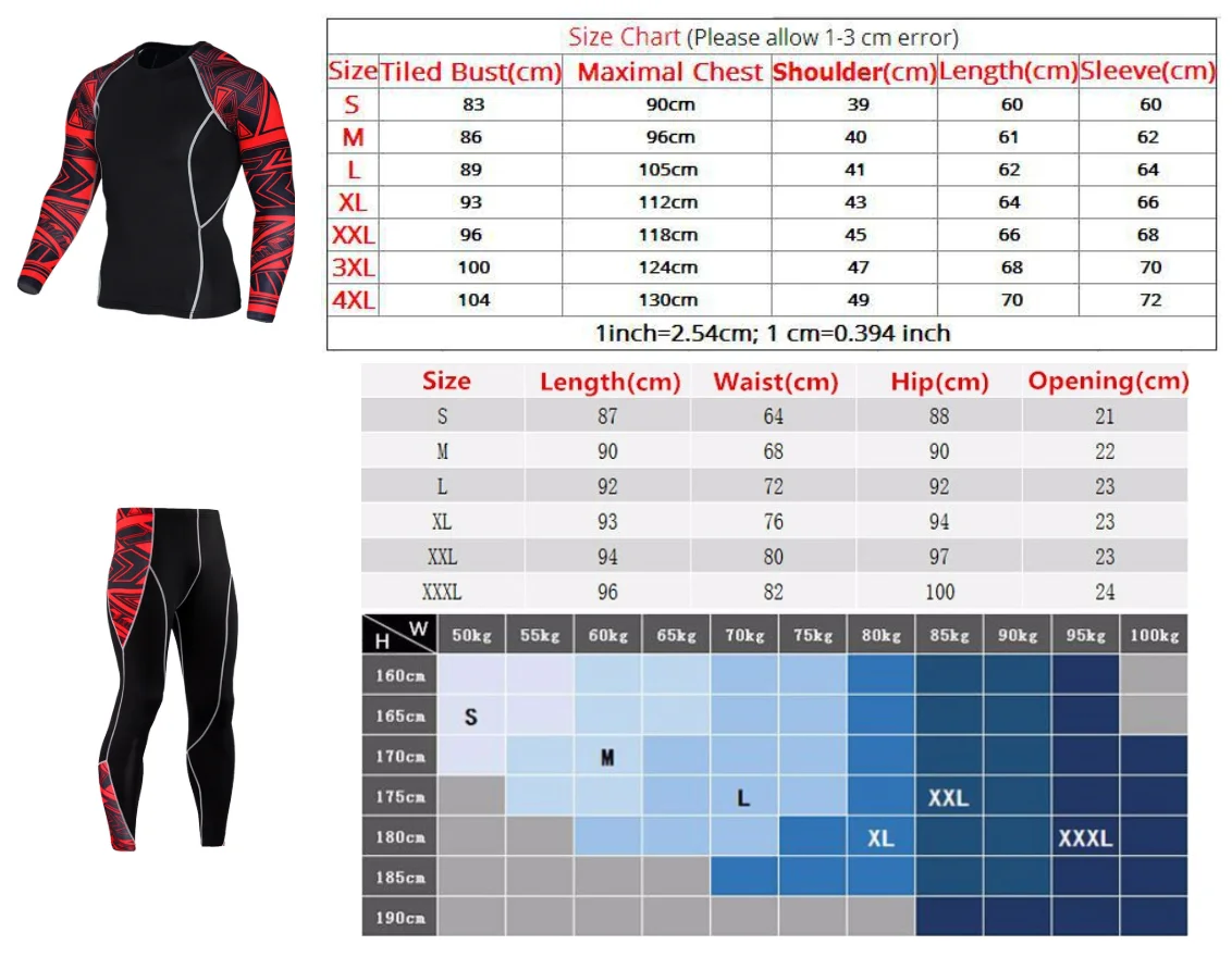 Зимнее мужское термобелье с длинным рукавом, колготки для фитнеса, ...