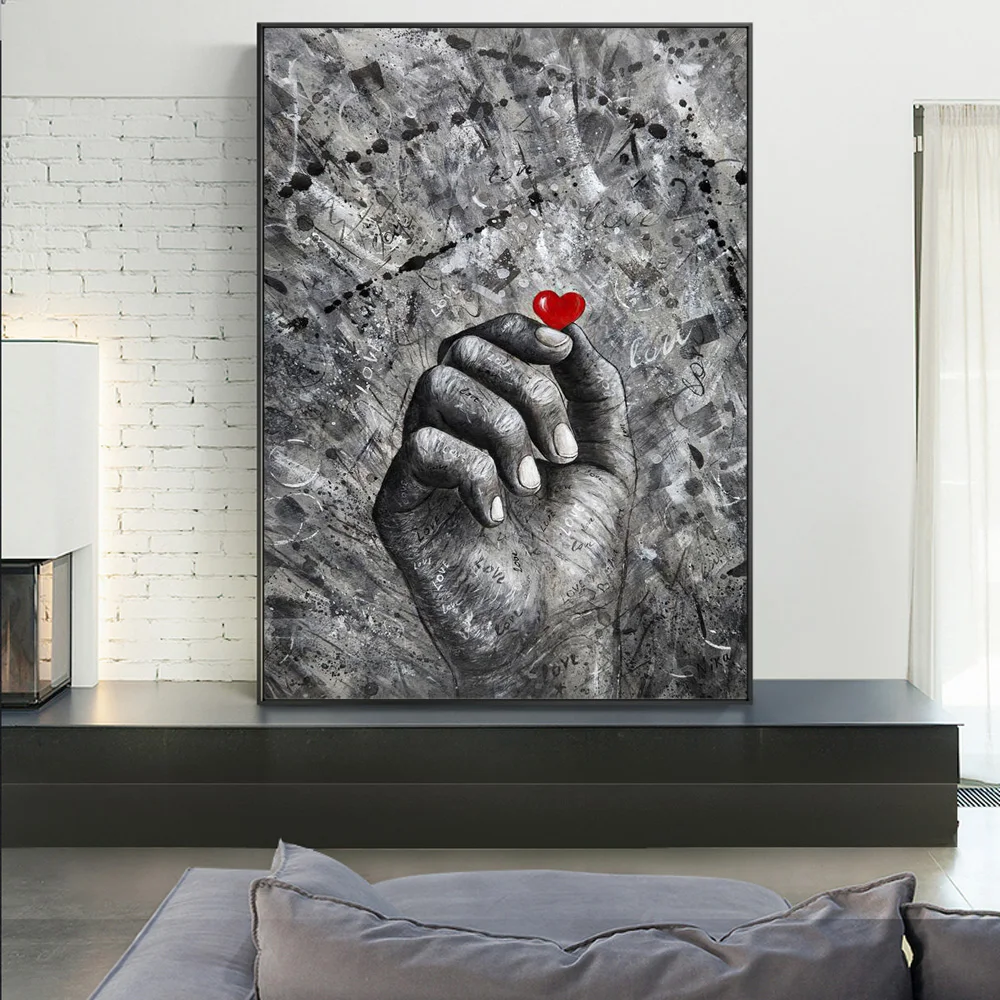 Красная любовь в серой руке Романтический постер и печать абстрактный скандинавский Эскиз Холст Живопись на стене искусство декоративная роспись картина