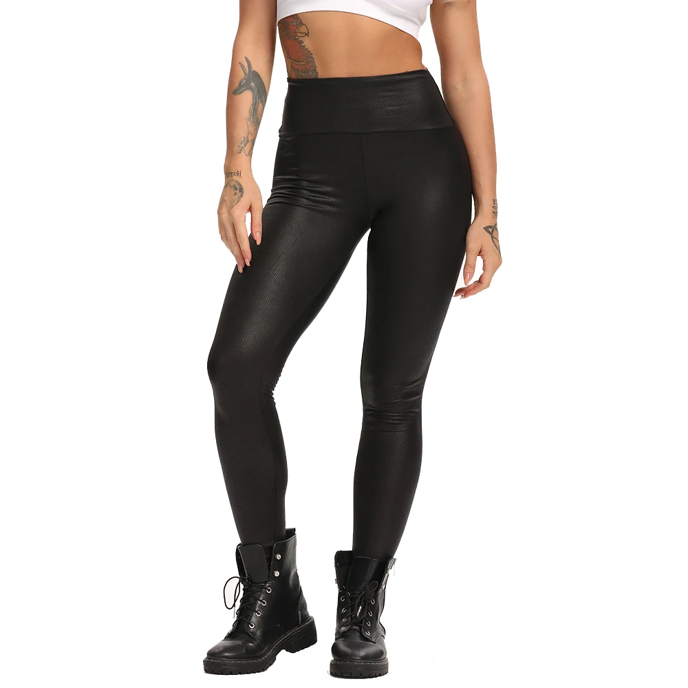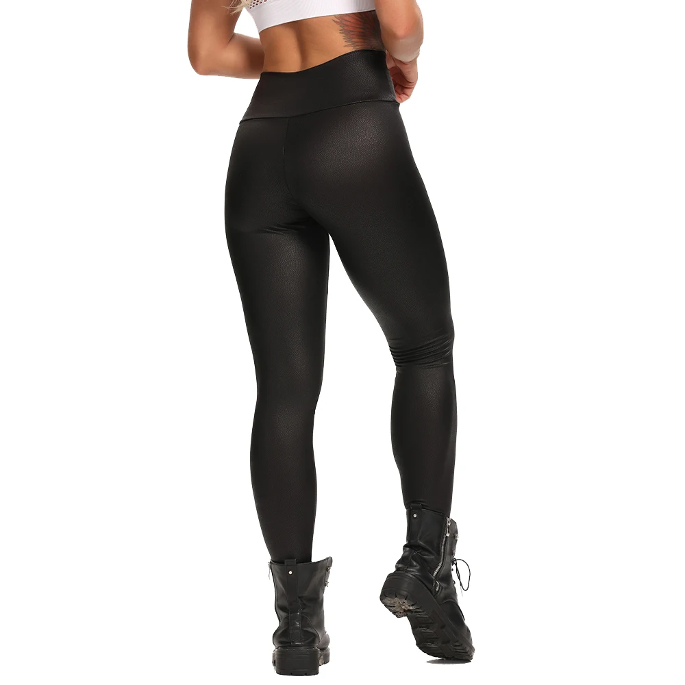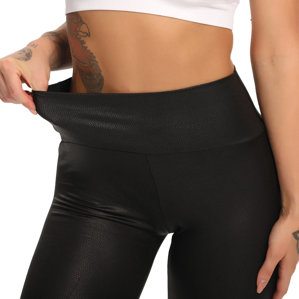 Женские кожаные леггинсы, кожаные брюки-карандаш для фитнеса, эластичные облегающие длинные брюки с высокой талией
