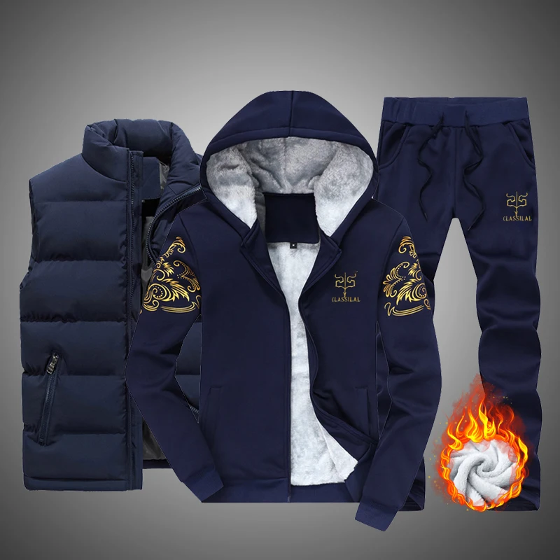 Спортивный костюм мужской зимний флисовый, повседневная утепленная толстовка с капюшоном, жилет, куртка, брюки, спортивная одежда