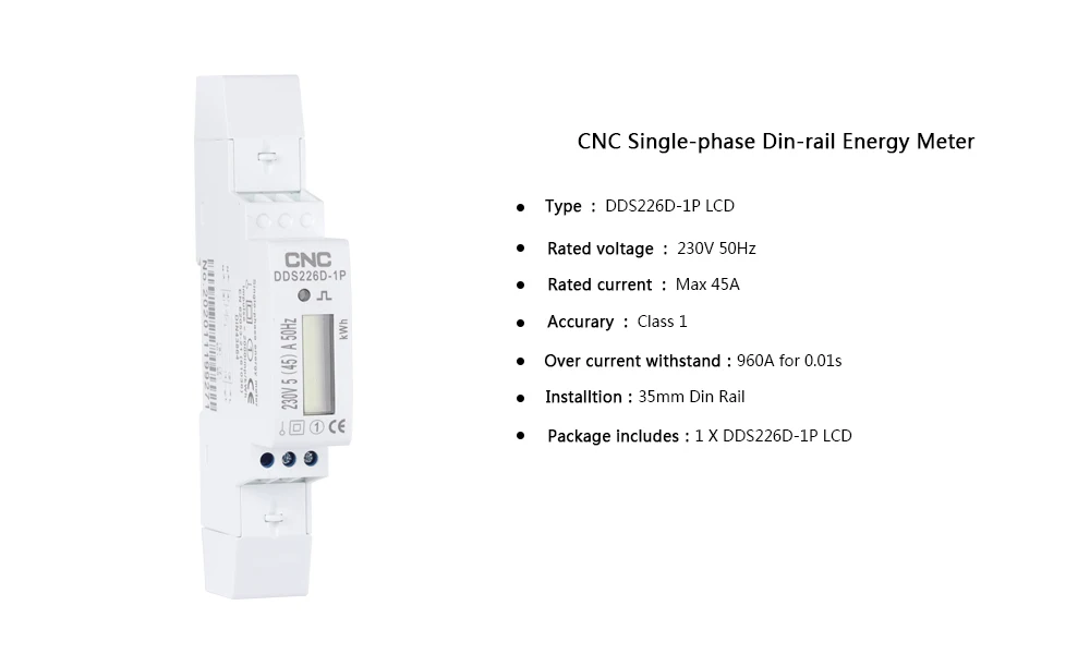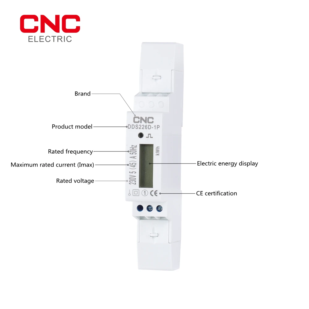 CNC DDS226D-1P LCD 35 мм стандартная установка DIN-рейки 5(45)A 230 В 50 Гц однофазный измеритель энергии на Din-рейку кВтч