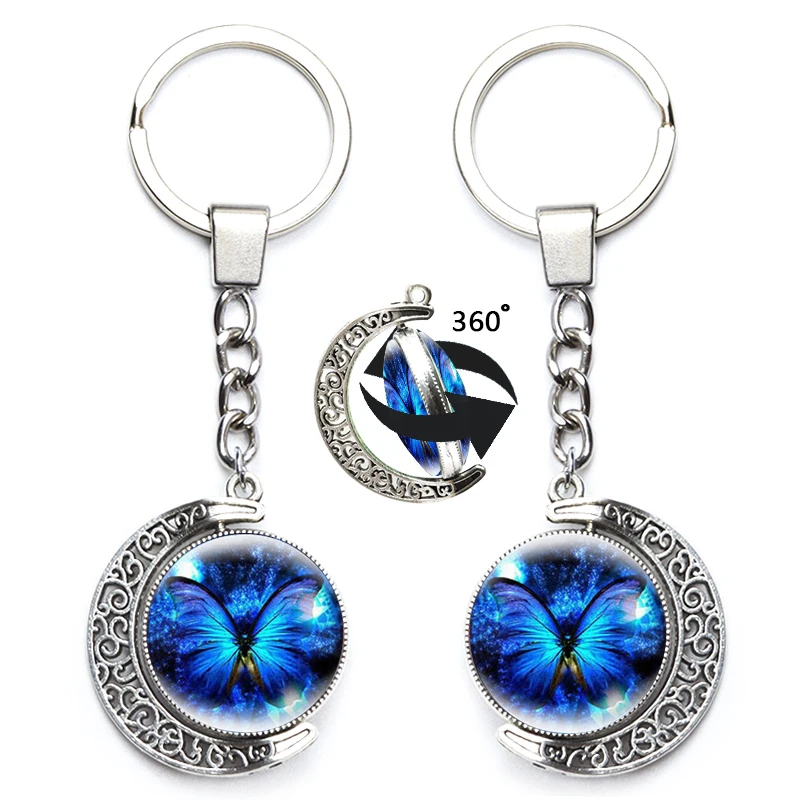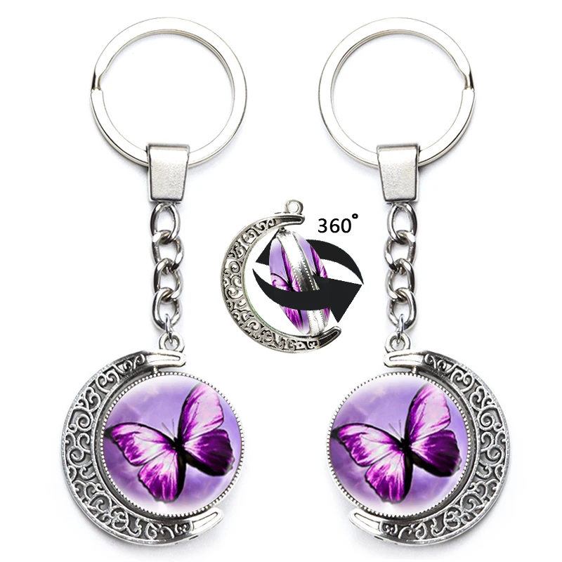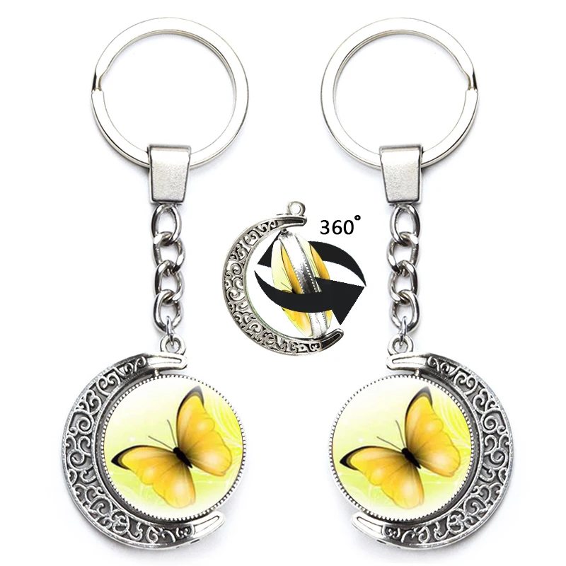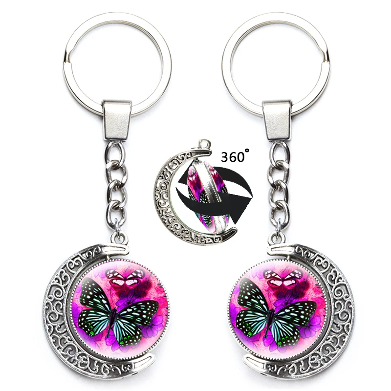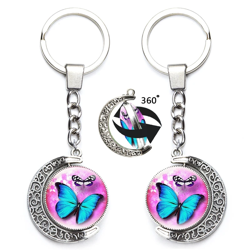 Милый брелок с бабочкой для женщин, художественный дизайн, стеклянный двусторонний брелок с поворотом на 360 градусов, красочная подвеска, сумка, аксессуар