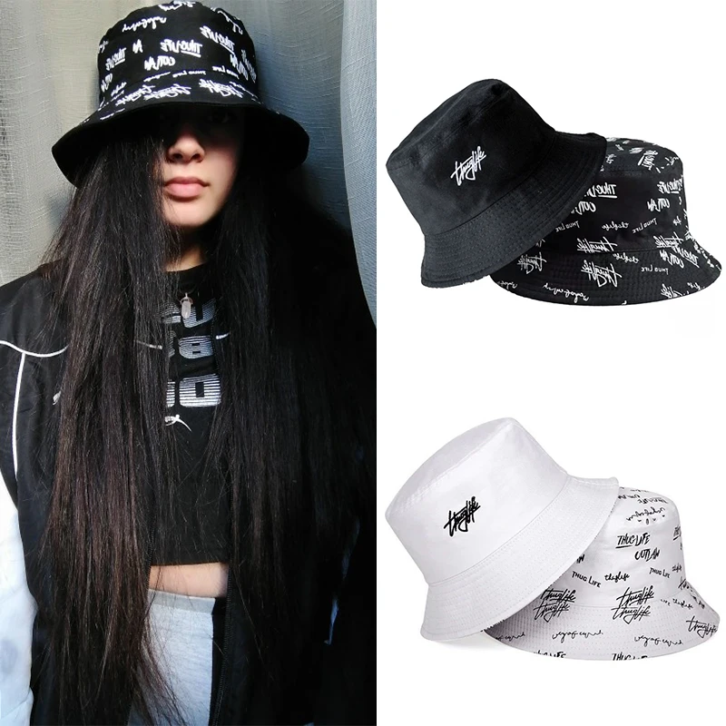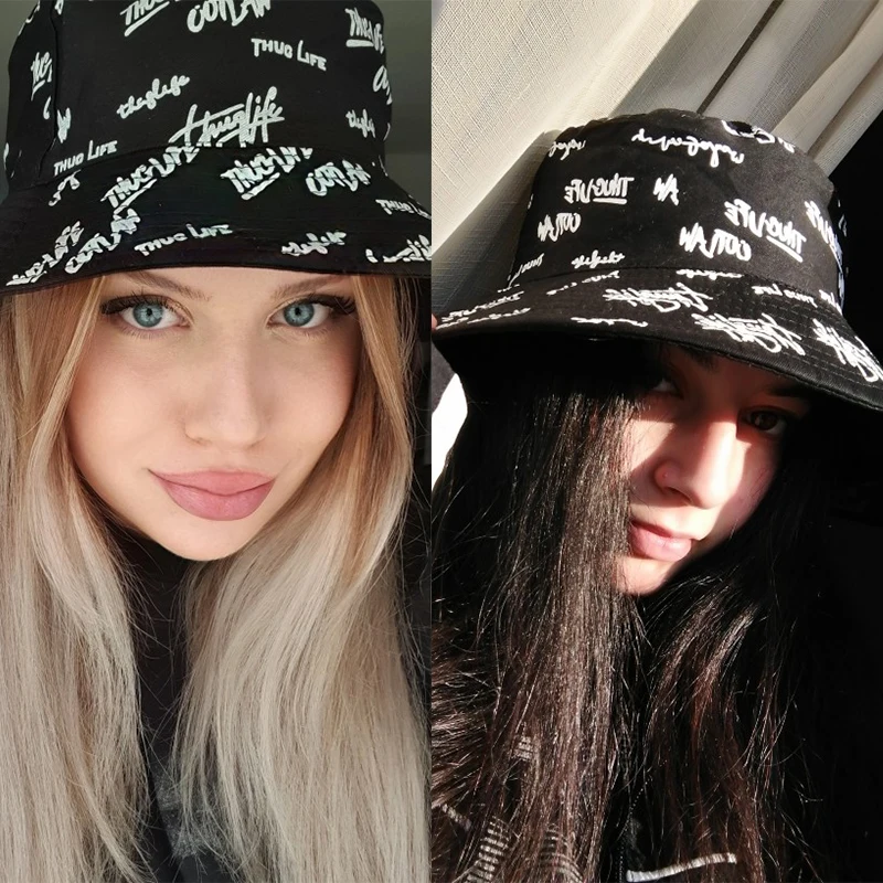 Женская панама с буквенным принтом, весенне-летние уличные солнцезащитные шапки, двухсторонние складные шапки для рыбаков с широкими полями