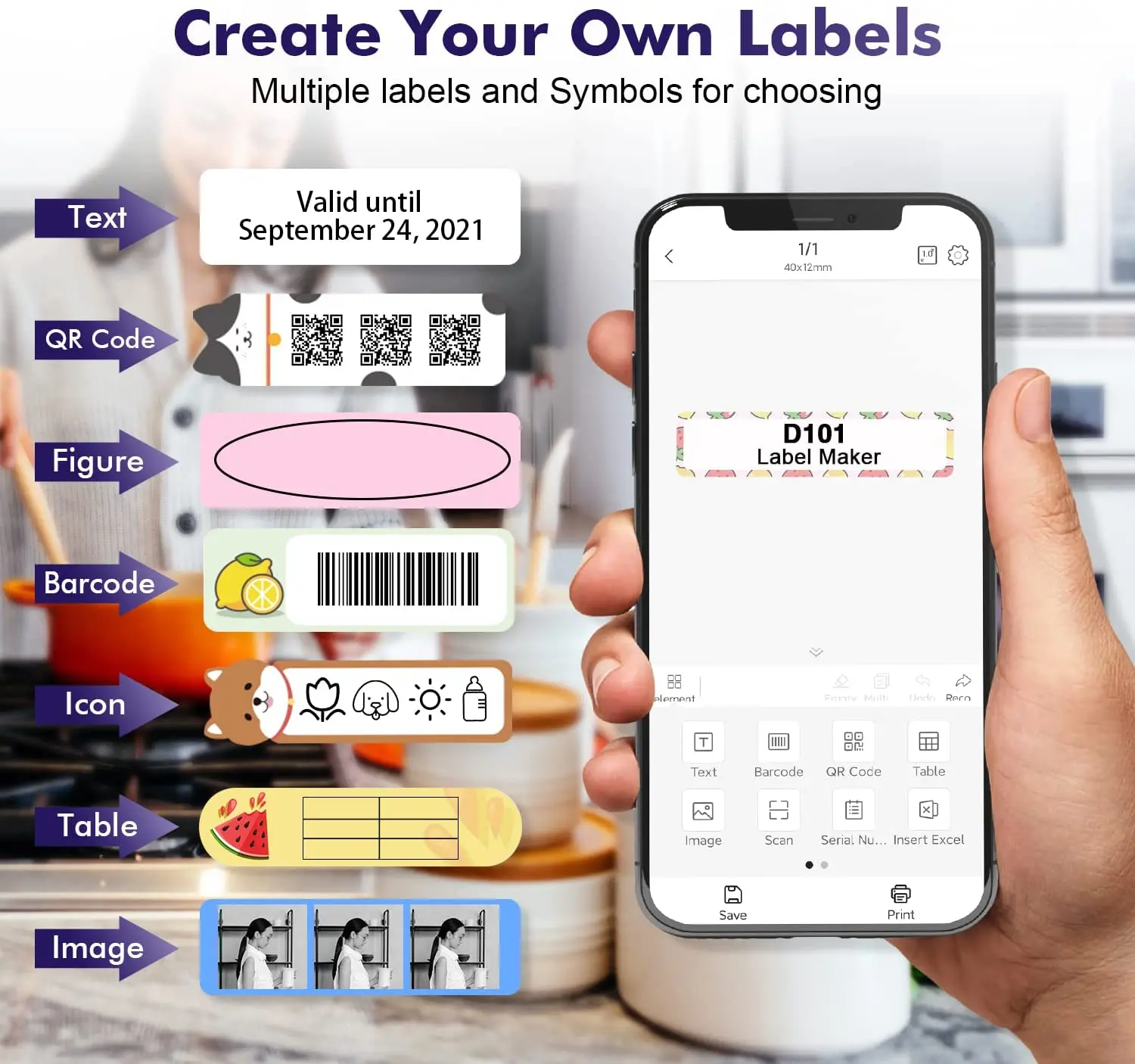 Портативный принтер для этикеток NiiMbot D101, беспроводной принтер для этикеток, лента для телефона, планшета, простая в использовании, Офисная и домашняя организация, D11 Plus
