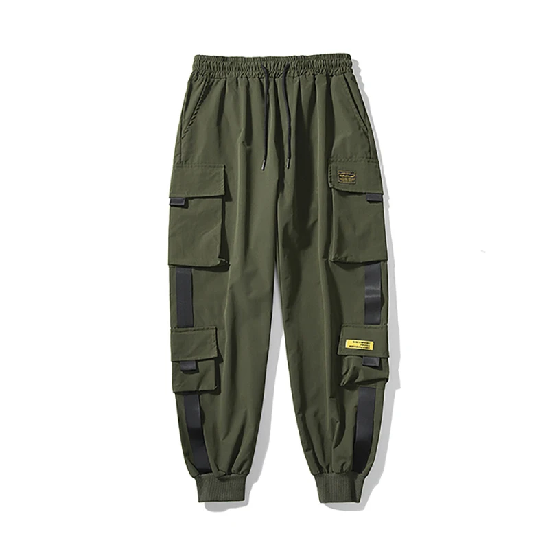 Джоггеры-шаровары с лентами, мужские брюки-карго, уличная одежда 20...