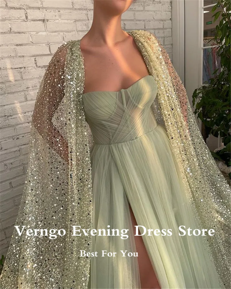 Verngo 2022 Новое светильник-зеленое Тюлевое платье для выпускного вечера с длинным блестящим жакетом вечернее платье с разрезом по бокам